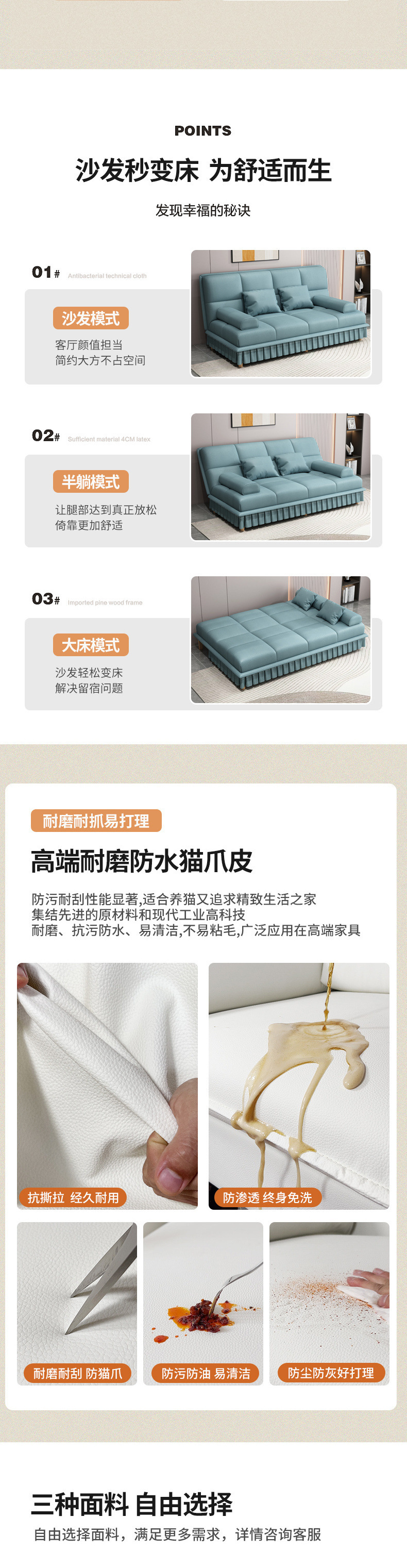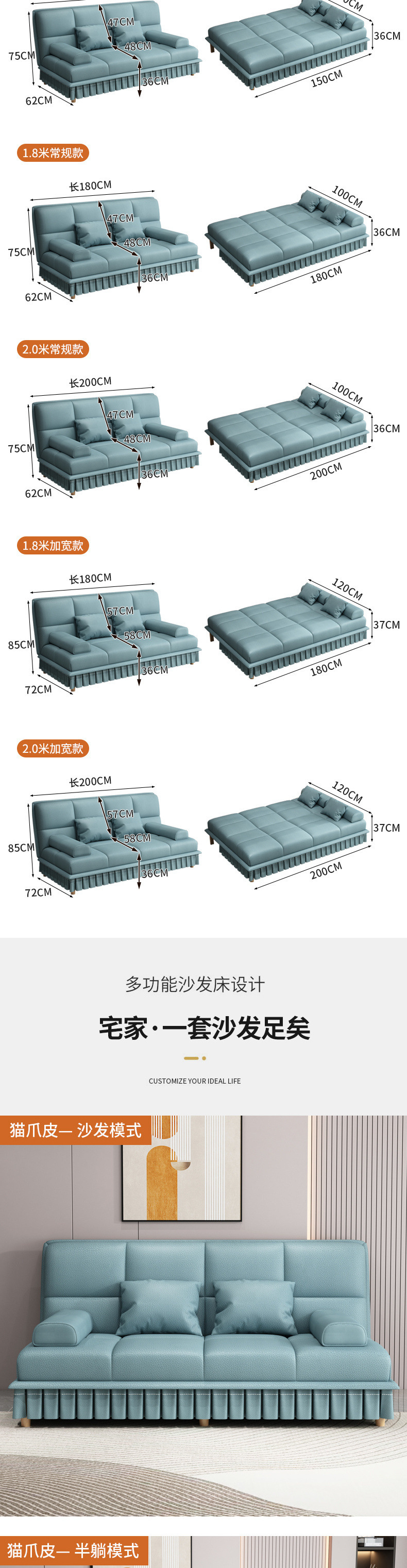 다기능 접이식 소파 베드, 이중 목적, 소형 아파트, 간단한 고양이 스크래치 가죽, 가정용 거실, 아파트, 게으른 사람들은 누워서 자고 있습니다.