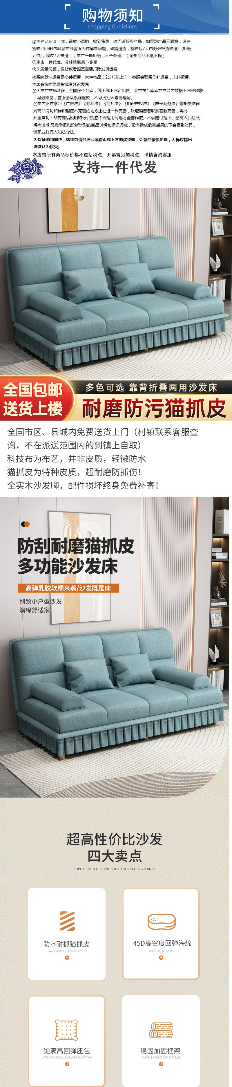 다기능 접이식 소파 베드, 이중 목적, 소형 아파트, 간단한 고양이 스크래치 가죽, 가정용 거실, 아파트, 게으른 사람들은 누워서 자고 있습니다.스토어 가기