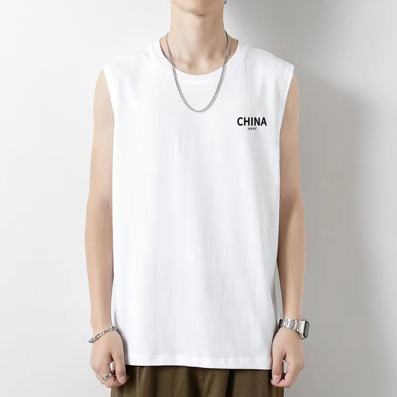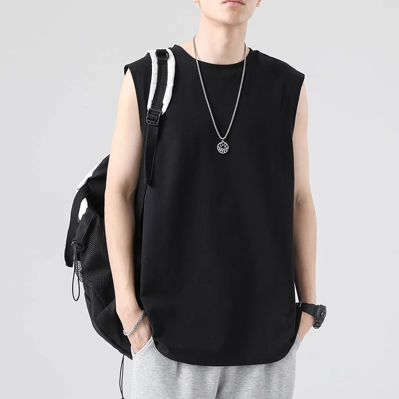 화이트 조끼 남성 봄 청소년 기본 느슨한 홍콩 스타일 민소매 티셔츠 대형 캐주얼 바닥 셔츠 인스토어 가기