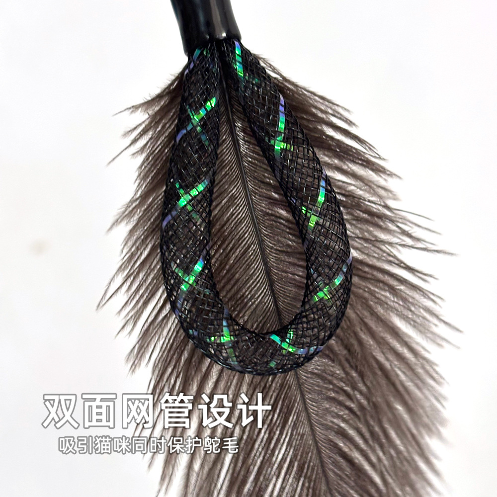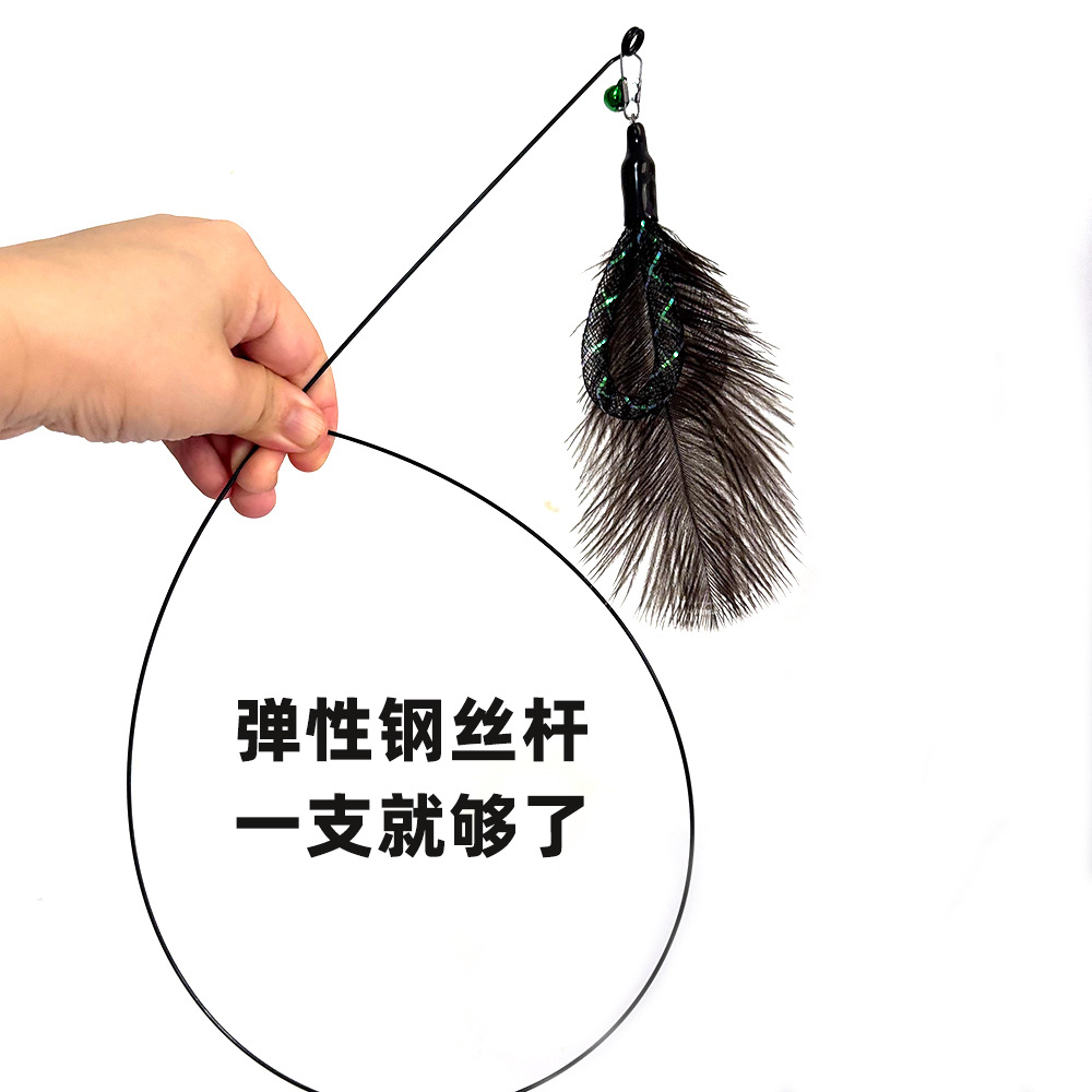 탄성 와이어 로드, 타조 깃털 메쉬 튜브, 고양이 놀리는 막대, 벨이 달린 셀프 흥분 막대, 타조 깃털 교체 헤드 고양이 장난감