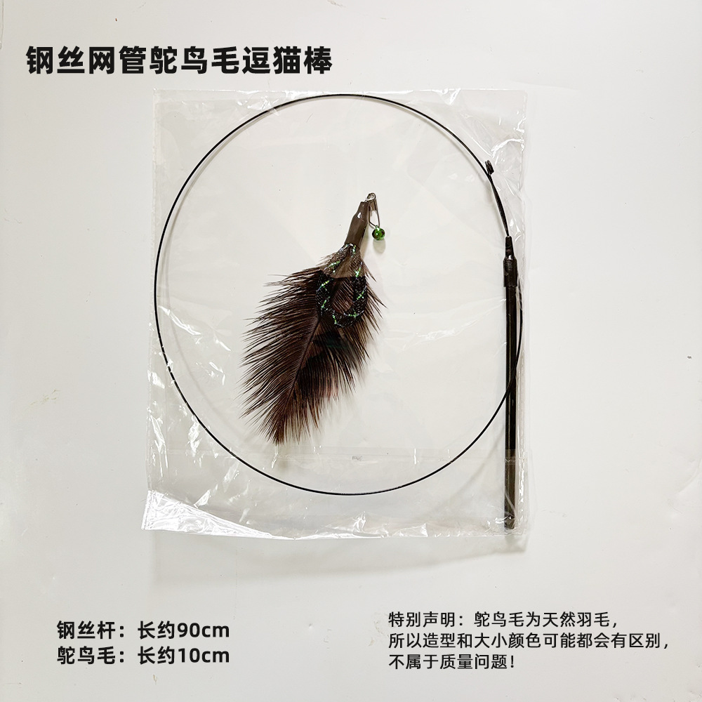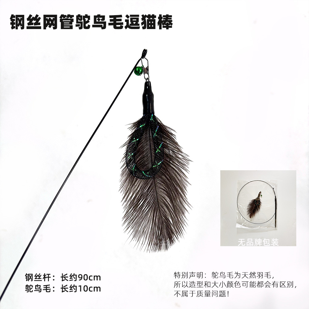 탄성 와이어 로드, 타조 깃털 메쉬 튜브, 고양이 놀리는 막대, 벨이 달린 셀프 흥분 막대, 타조 깃털 교체 헤드 고양이 장난감스토어 가기
