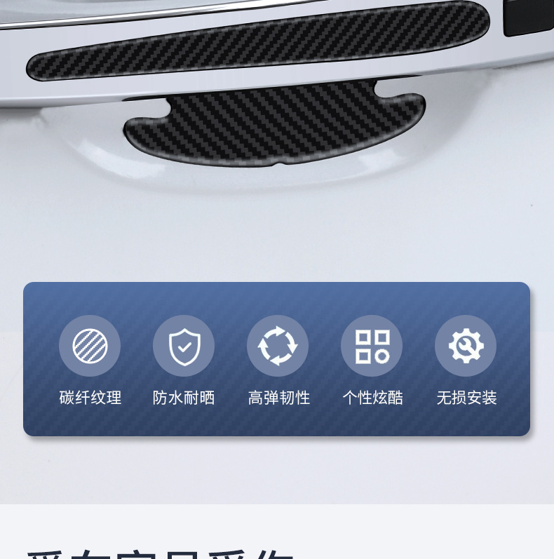 국경 간 자동차 도어 그릇 도어 핸들 충돌 방지 스트립 도어 핸들 도어 손목 긁힘 방지 팔걸이 보호 탄소 섬유 패턴 도어 가장자리 장식