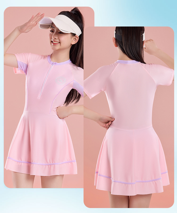 여아 수영복 원피스 2025 새로운 자외선 차단 속건성 수영복 가슴 패드 포함 중학생 및 중학생 수영 장비