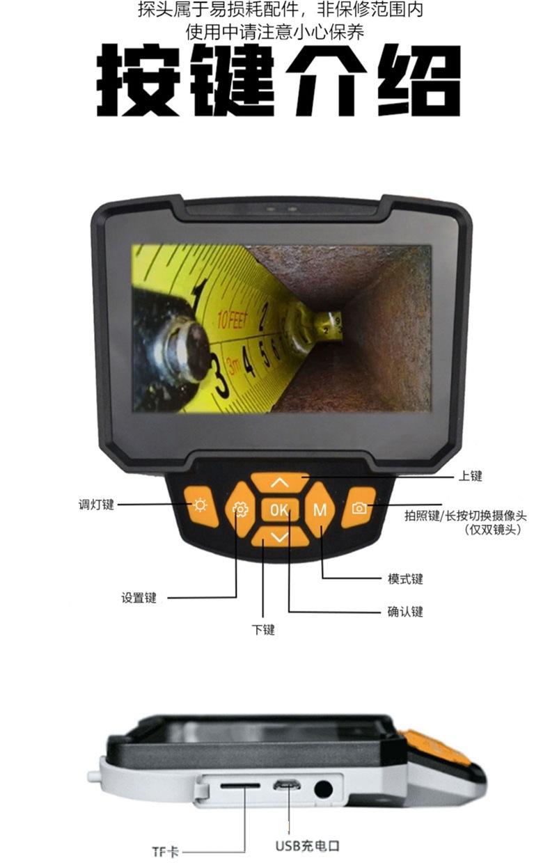 • [듀얼 렌즈 하드 케이블] 직경 8mm, 케이블 길이 1mmm, 무료 메모리 카드-1080p