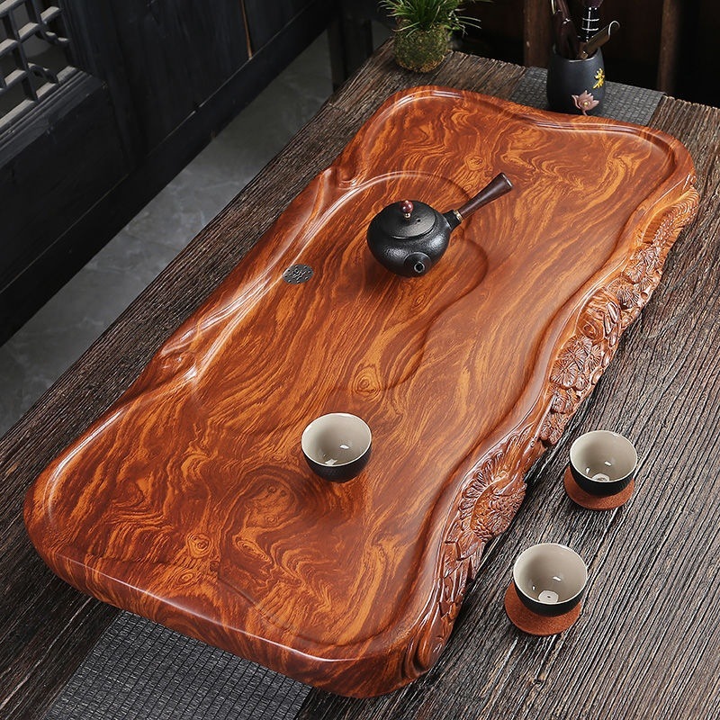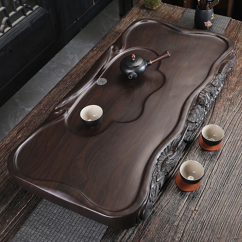 가정용 차 트레이 2024 새로운 스타일의 가벼운 럭셔리 하이 엔드 전체 검은 백단 질감 차 바다 차 테이블 대형 단단한 나무 로즈 우드 질감 트레이스토어 가기