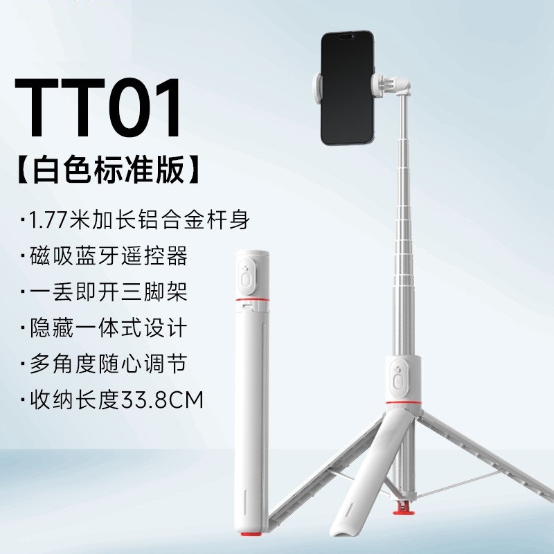 • TT01【화이트- 1.77m 】알루미늄 합금 폴*자기 블루투스 리모컨*숨겨진 디자인*지면에 닿으면 열림