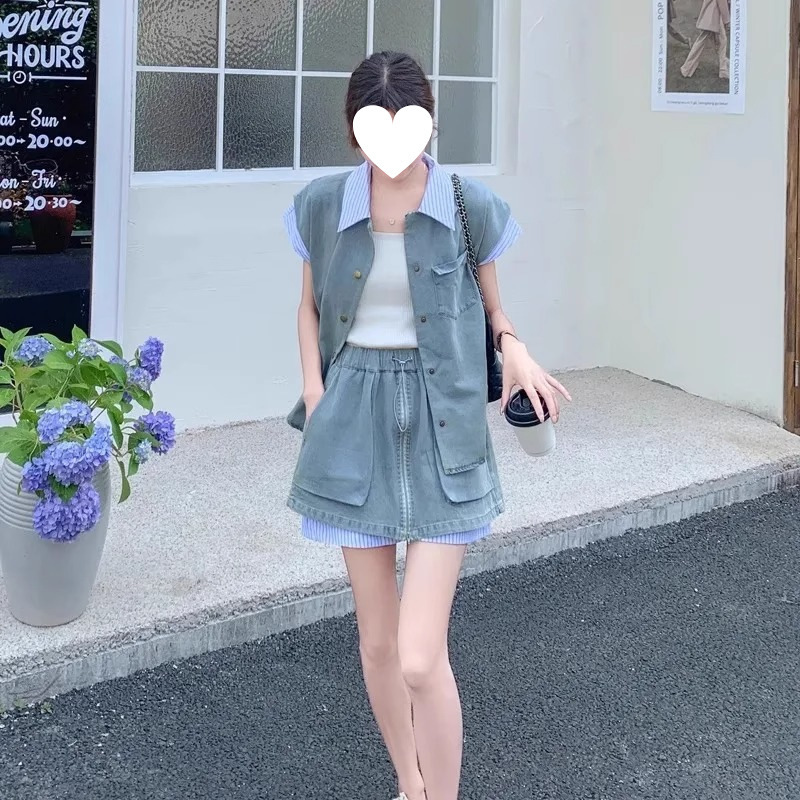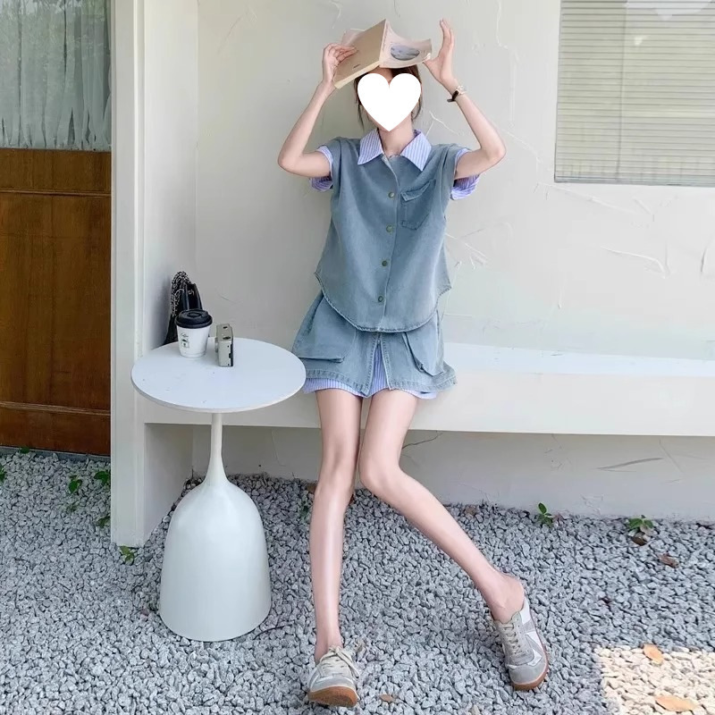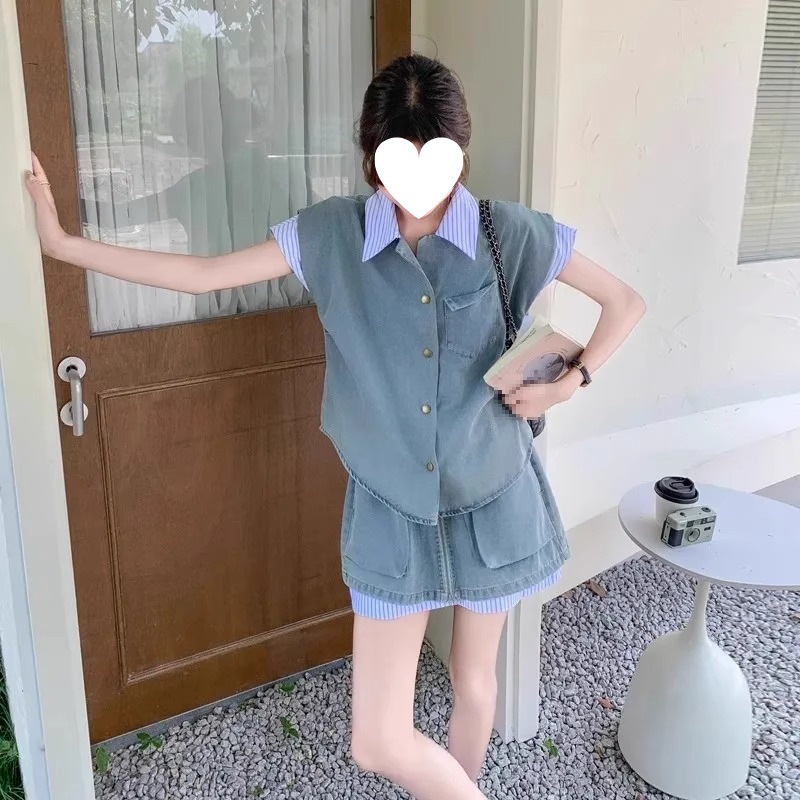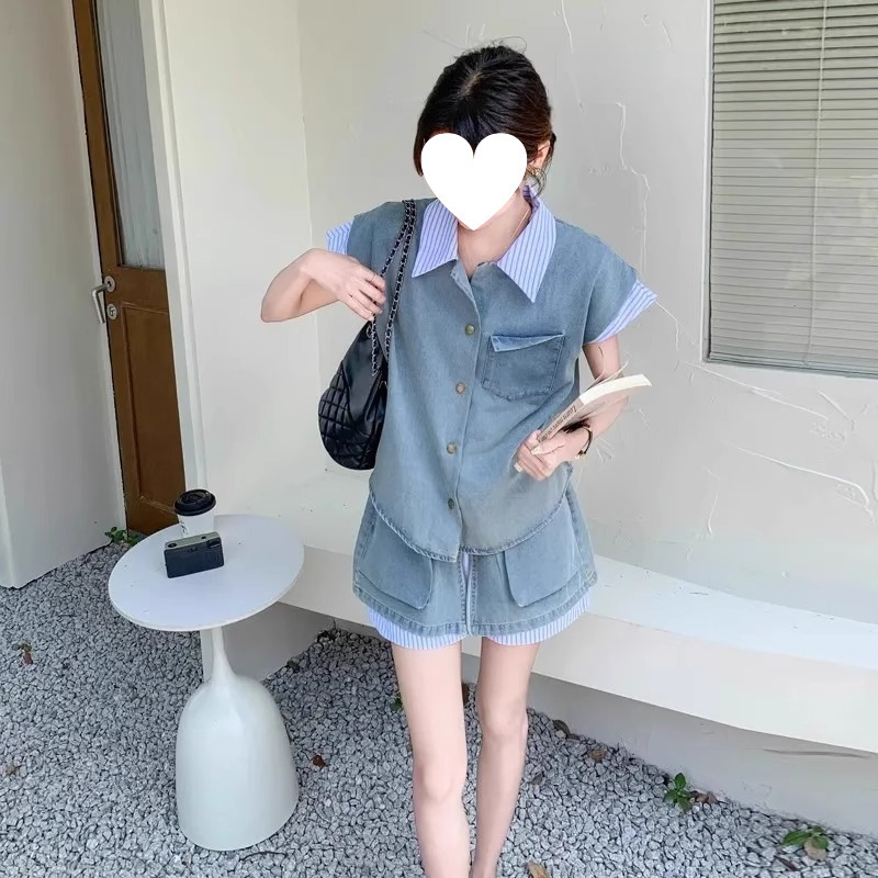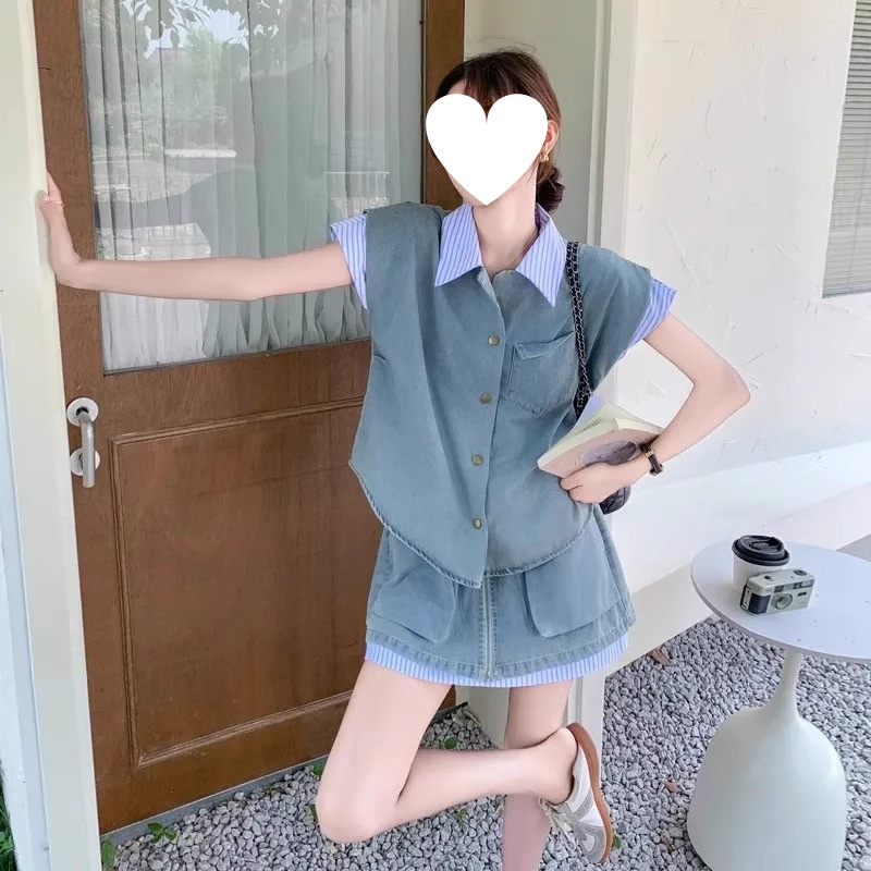 여성을 위한 독특하고 독특한 디자인의 작은 데님 슈트 2025 새로운 여름 패션 스트리트 스커트 투피스 세트스토어 가기