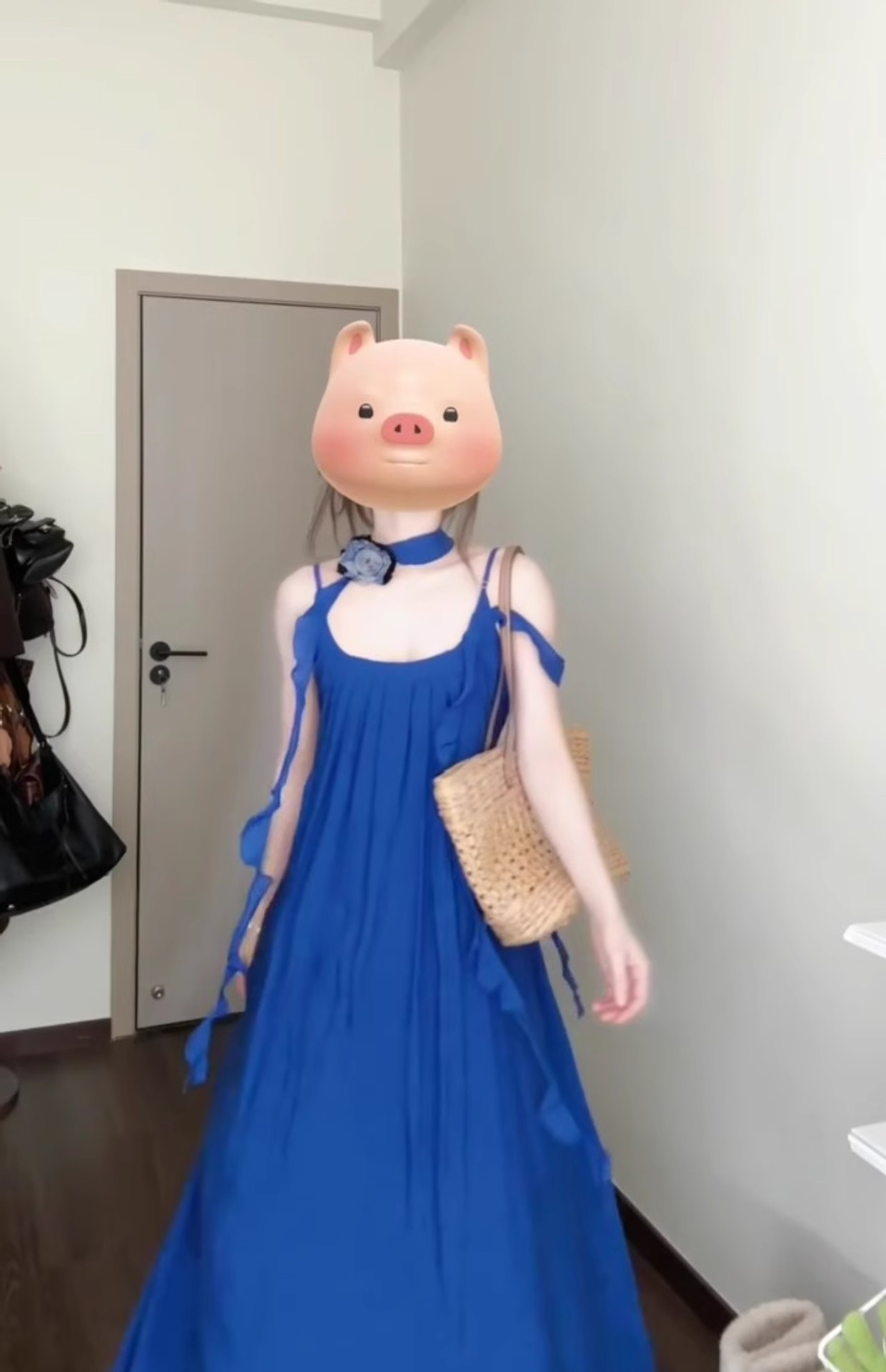 클라인 블루 리조트 스타일 드레스, 여름 아름다운 화이트 프렌치 하이엔드 해변 해변 서스펜더 롱 스커트스토어 가기