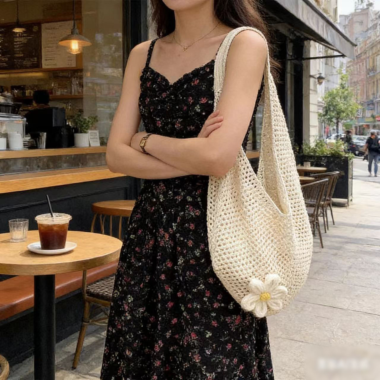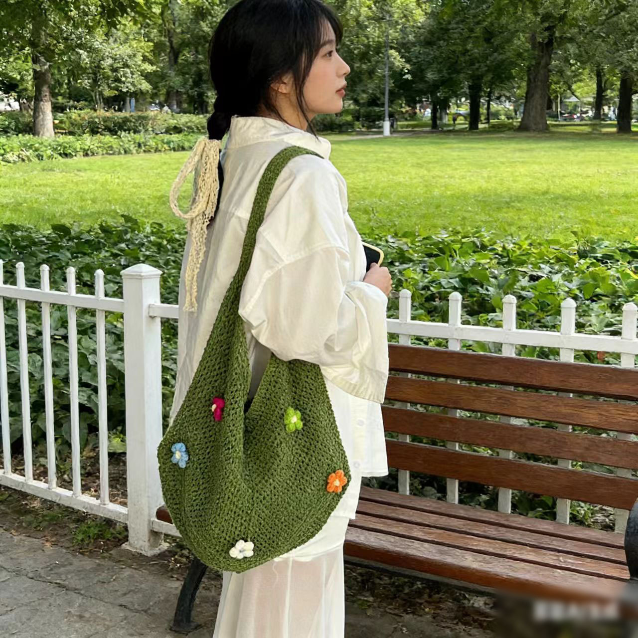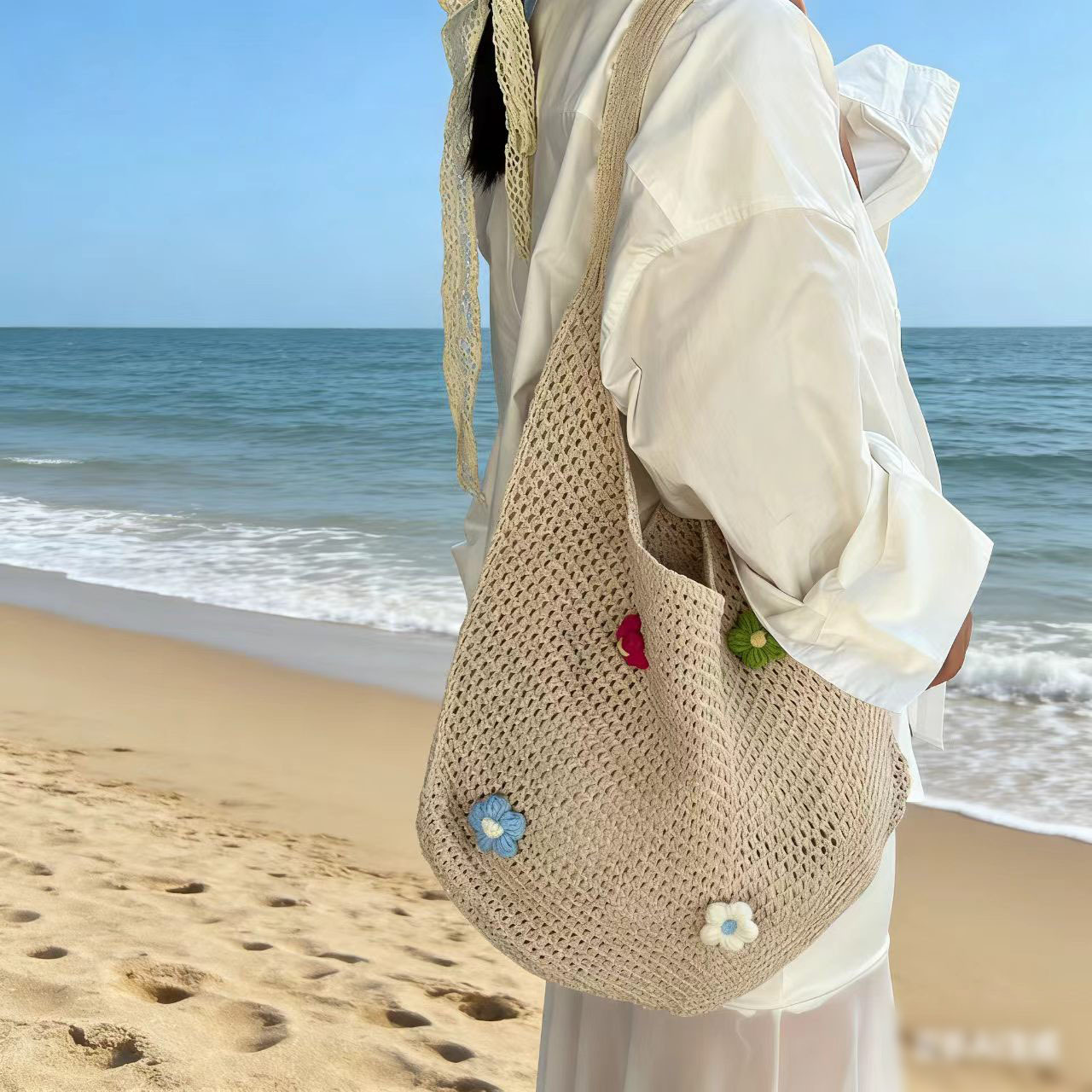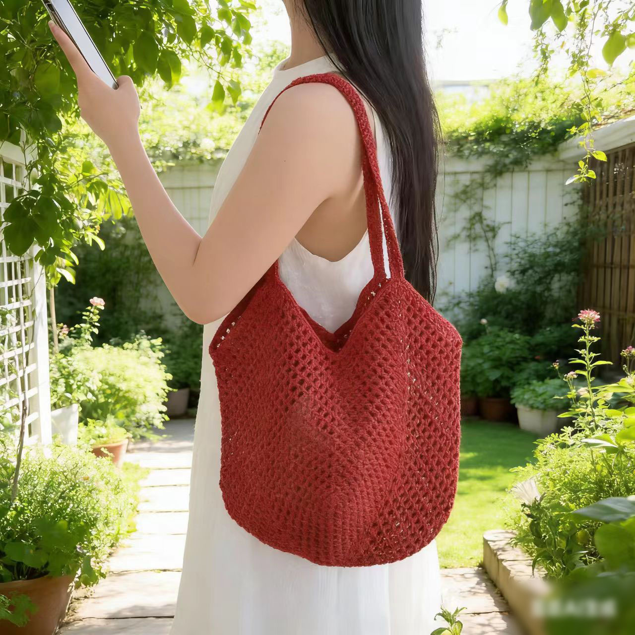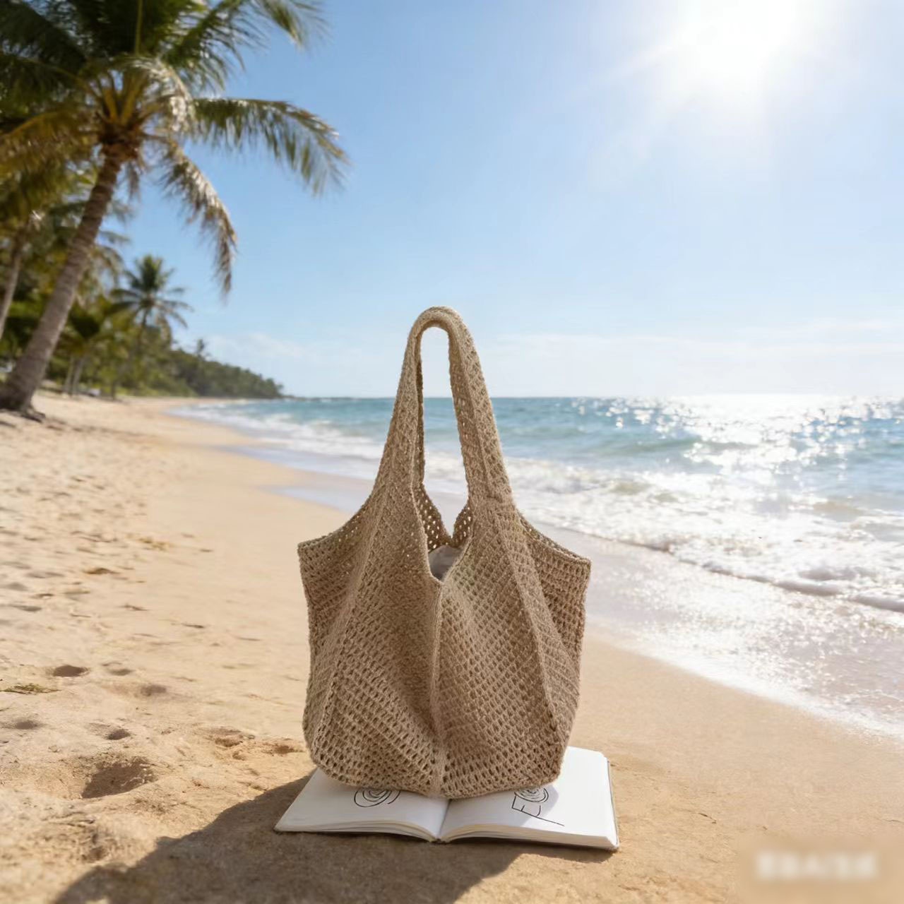 대용량 짠 가방 2025 새로운 틈새 중공 어깨 밀짚 가방 캐주얼 통근 토트 백 다용도 여성용 가방스토어 가기
