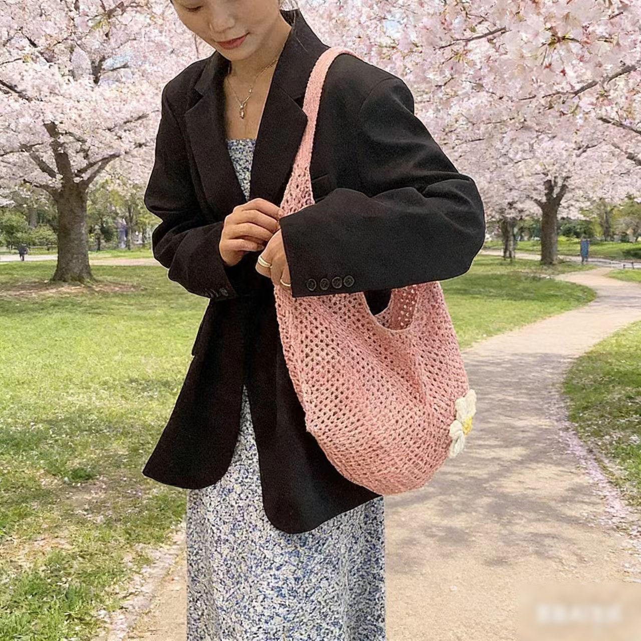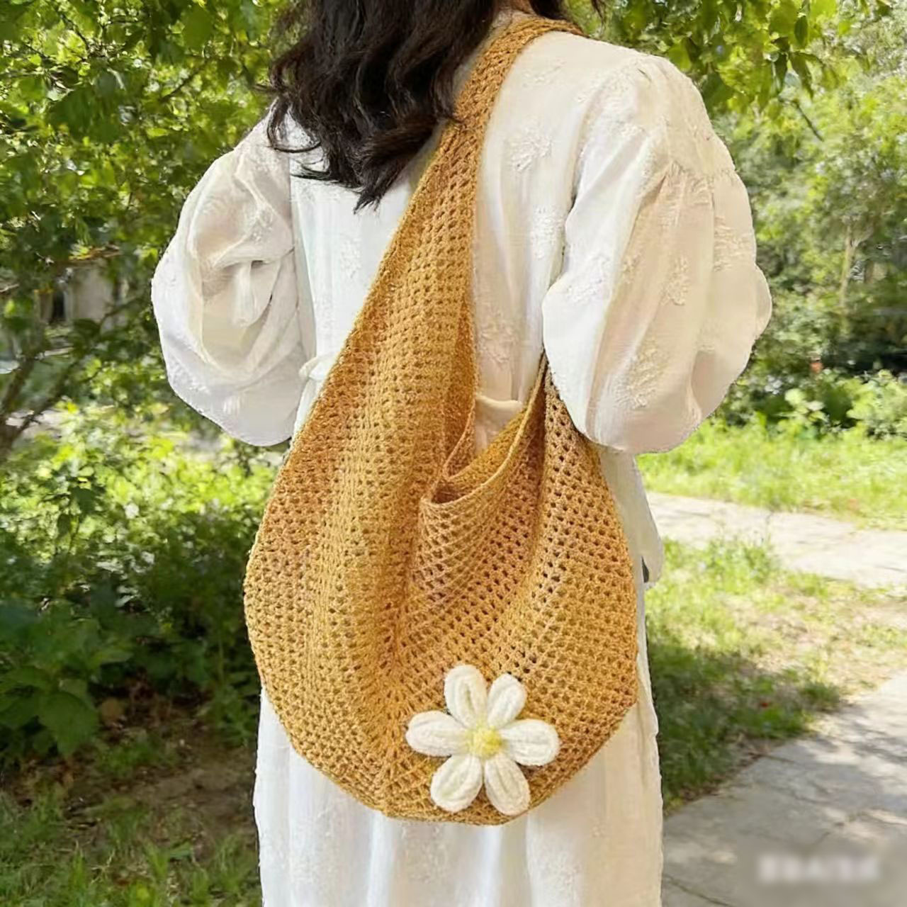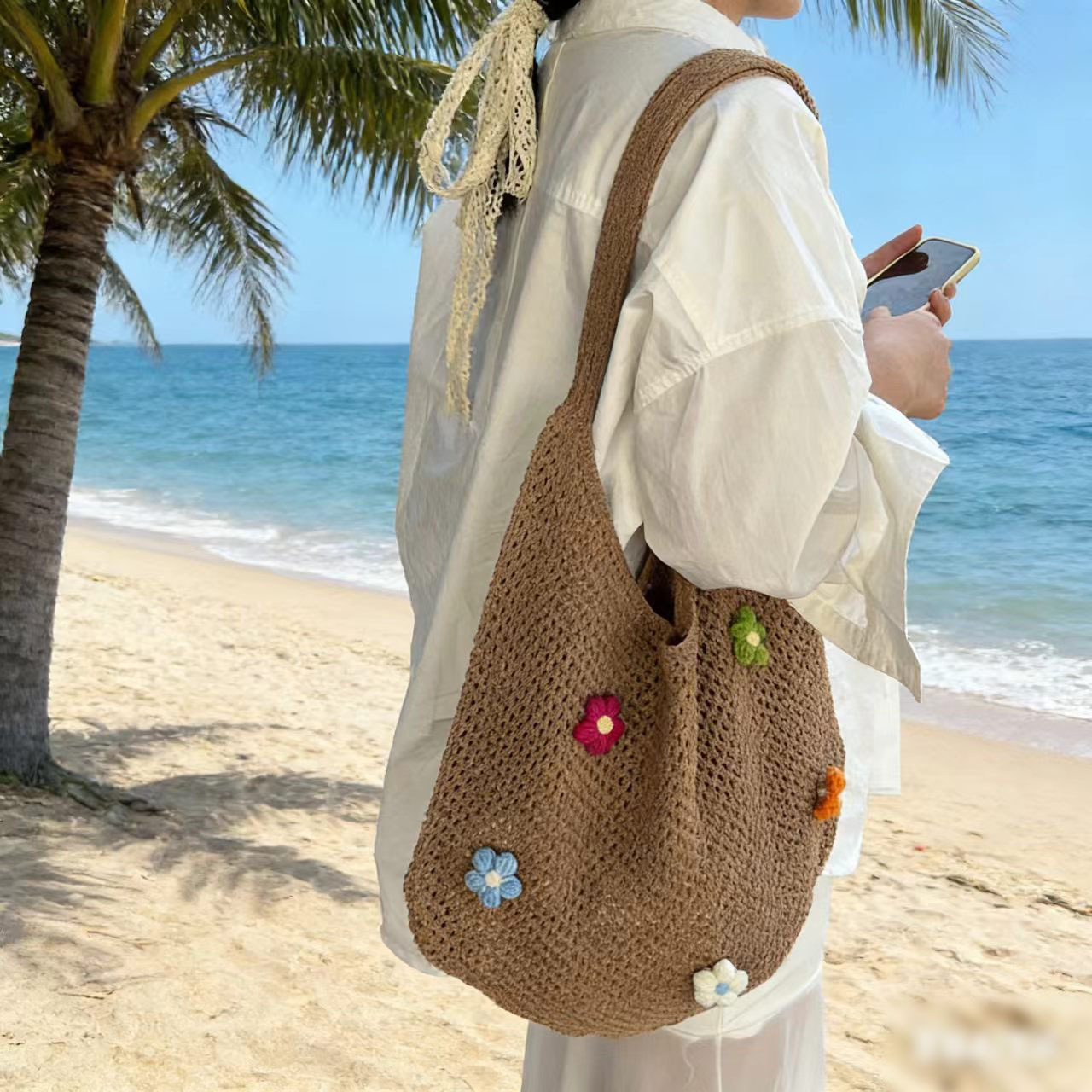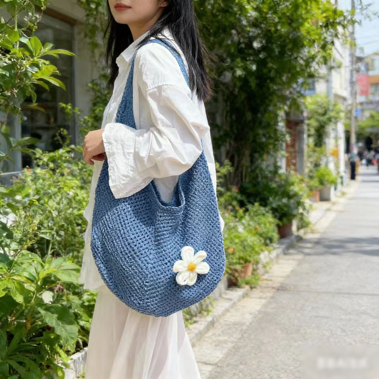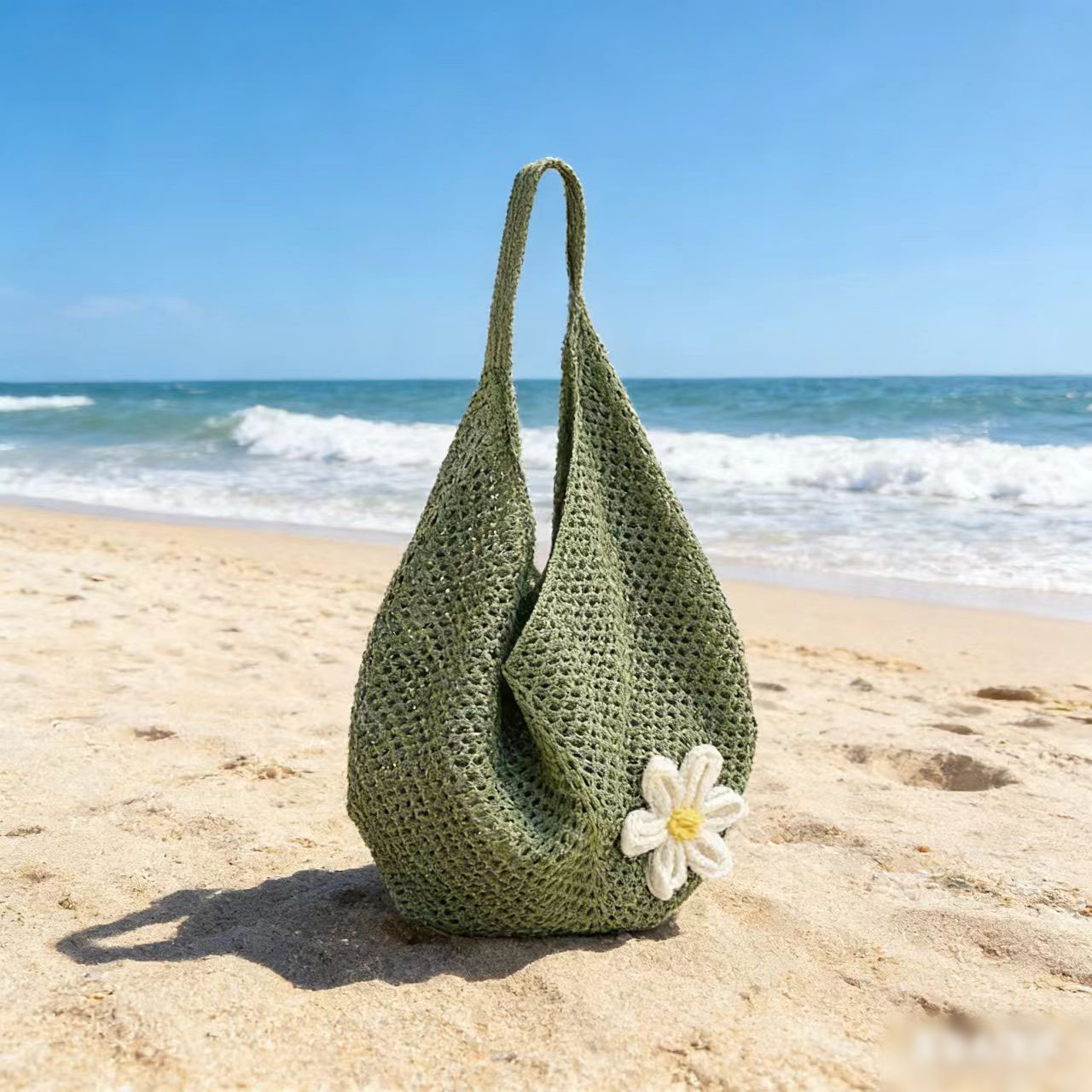 대용량 짠 가방 2025 새로운 틈새 중공 어깨 밀짚 가방 캐주얼 통근 토트 백 다용도 여성용 가방스토어 가기