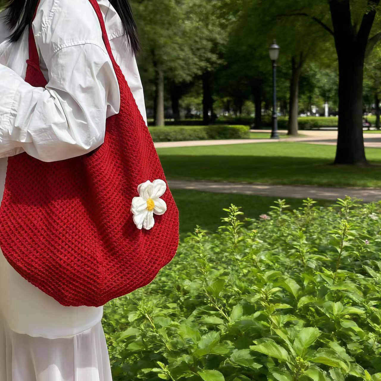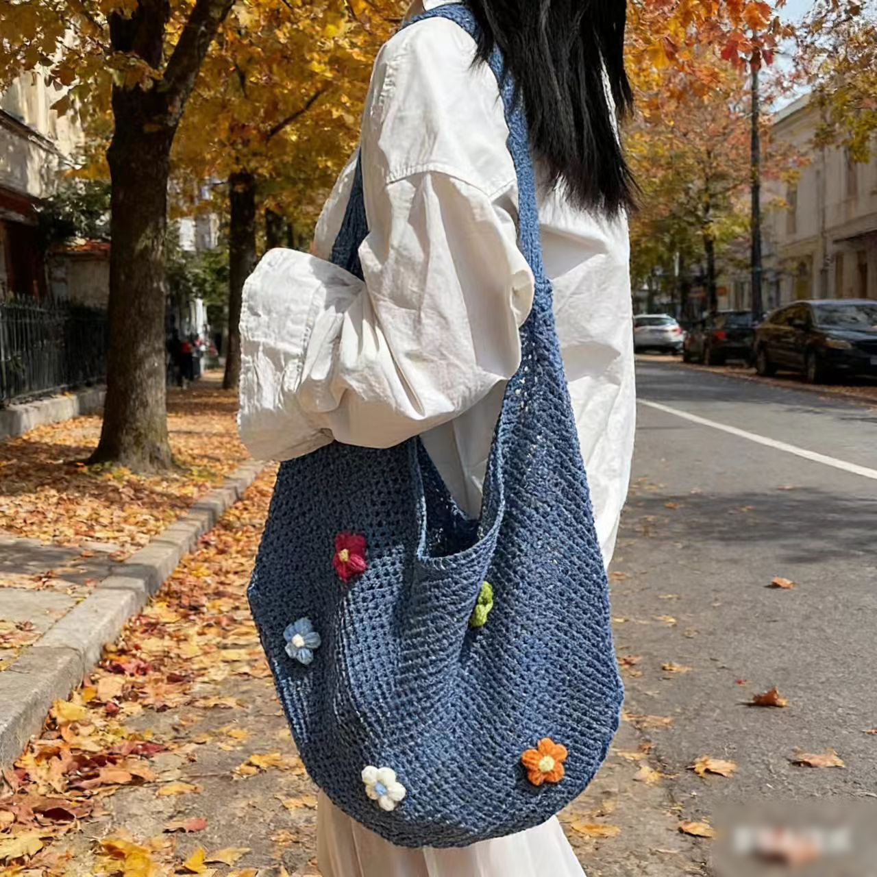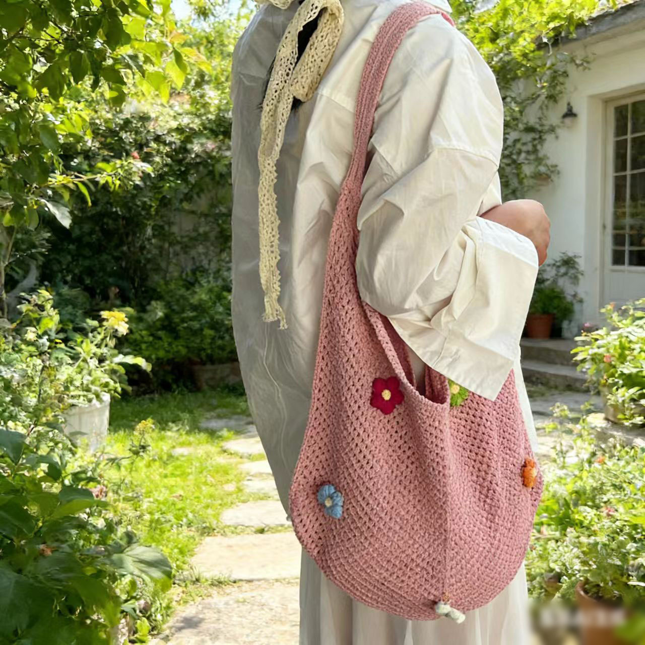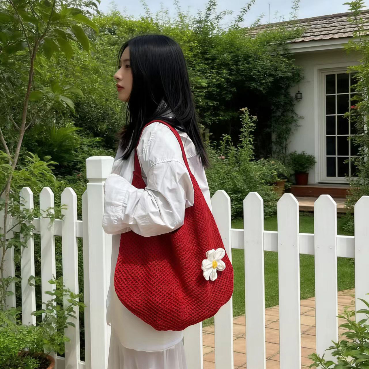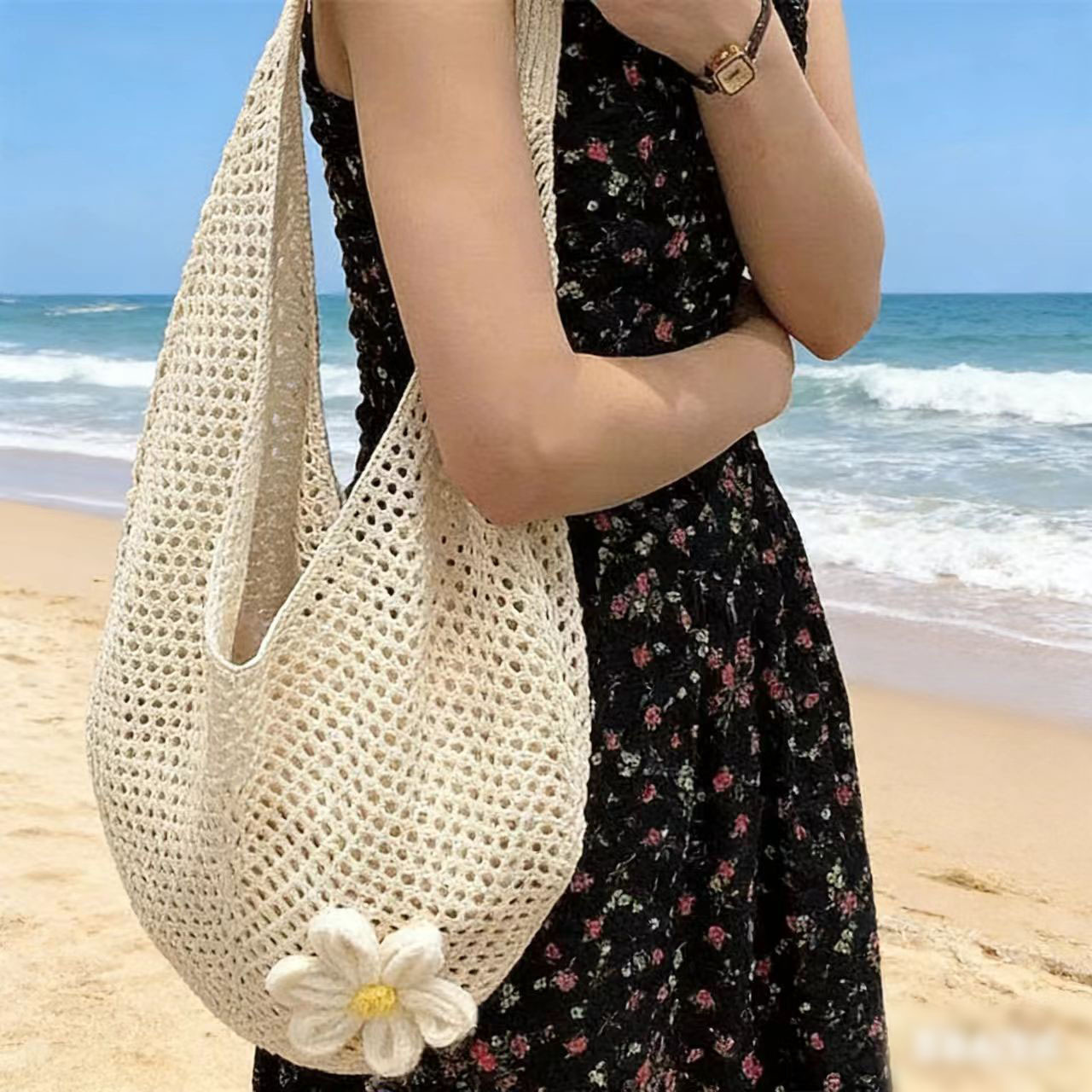 대용량 짠 가방 2025 새로운 틈새 중공 어깨 밀짚 가방 캐주얼 통근 토트 백 다용도 여성용 가방스토어 가기