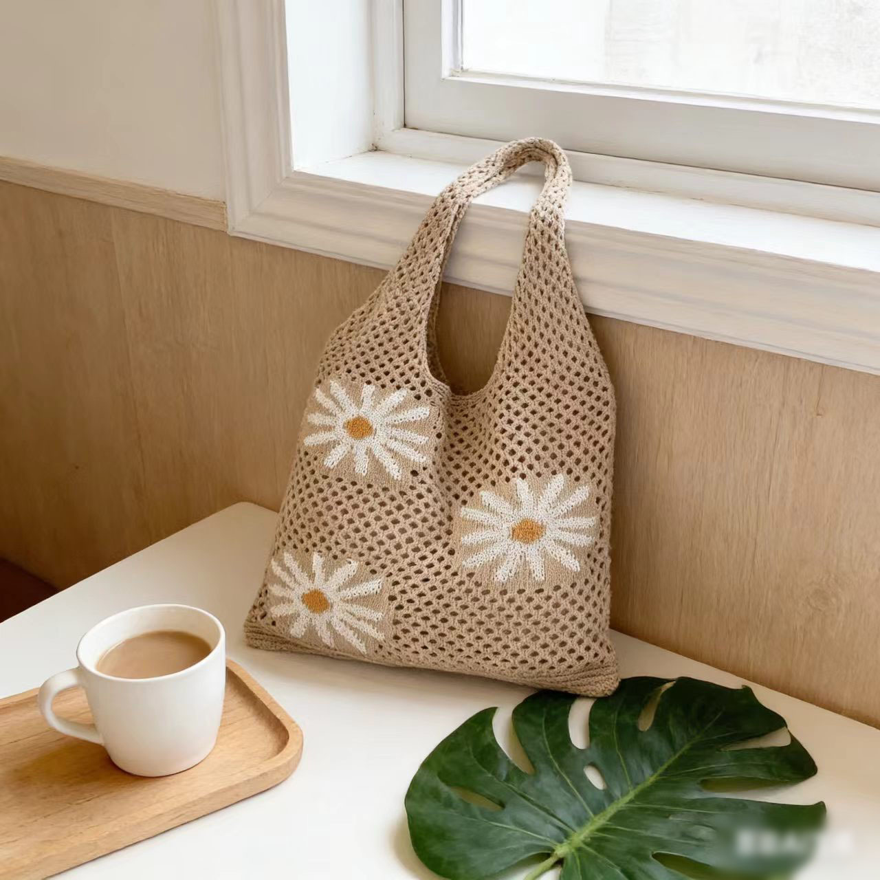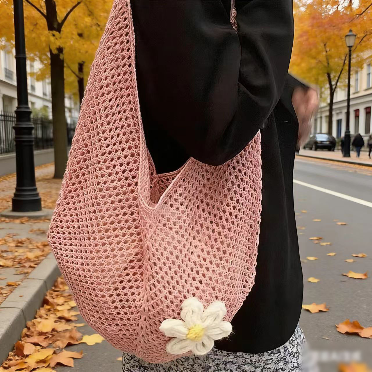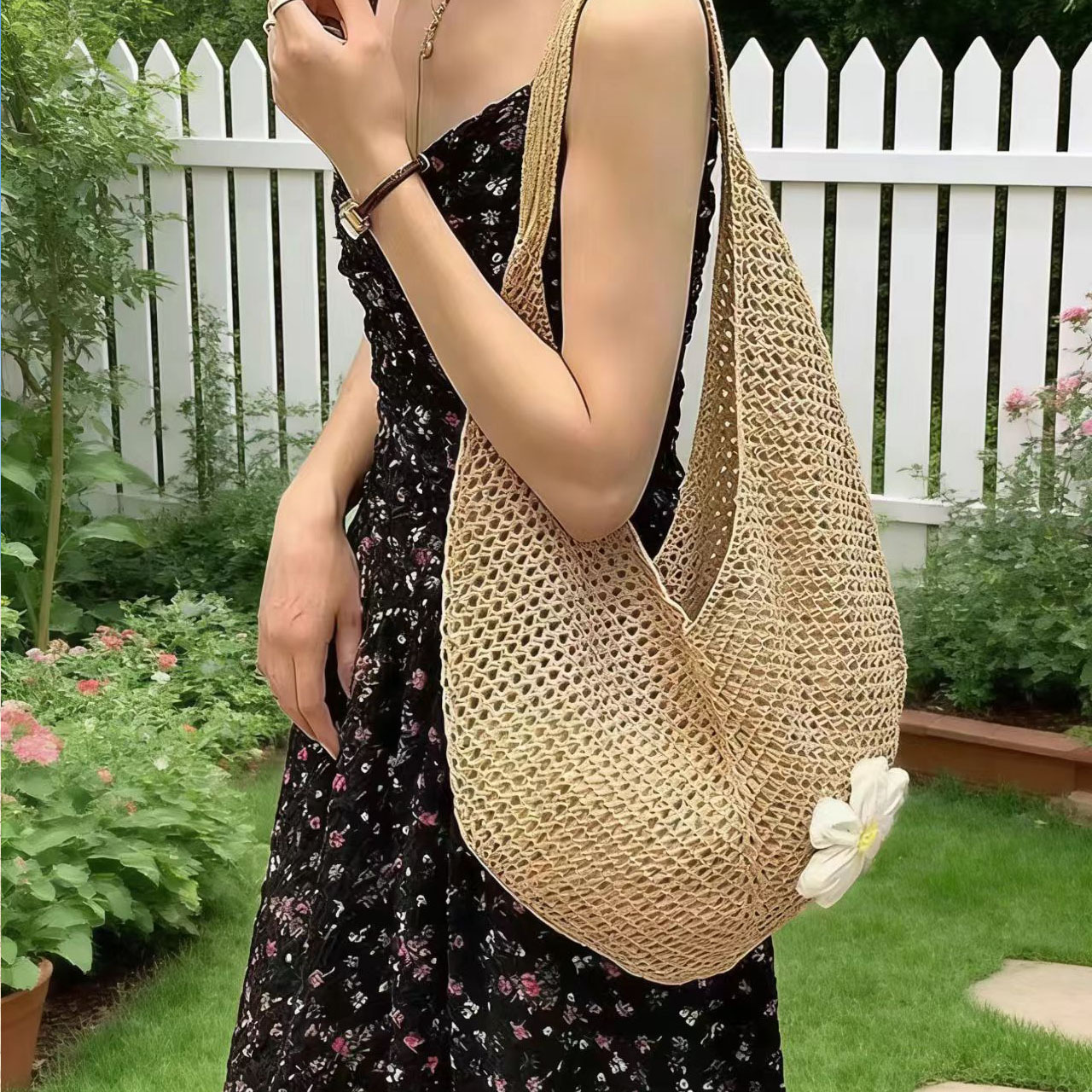 대용량 짠 가방 2025 새로운 틈새 중공 어깨 밀짚 가방 캐주얼 통근 토트 백 다용도 여성용 가방