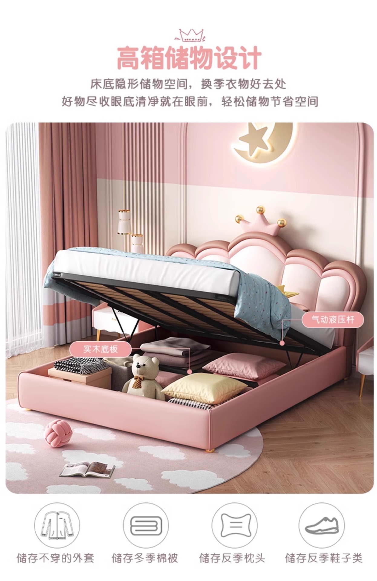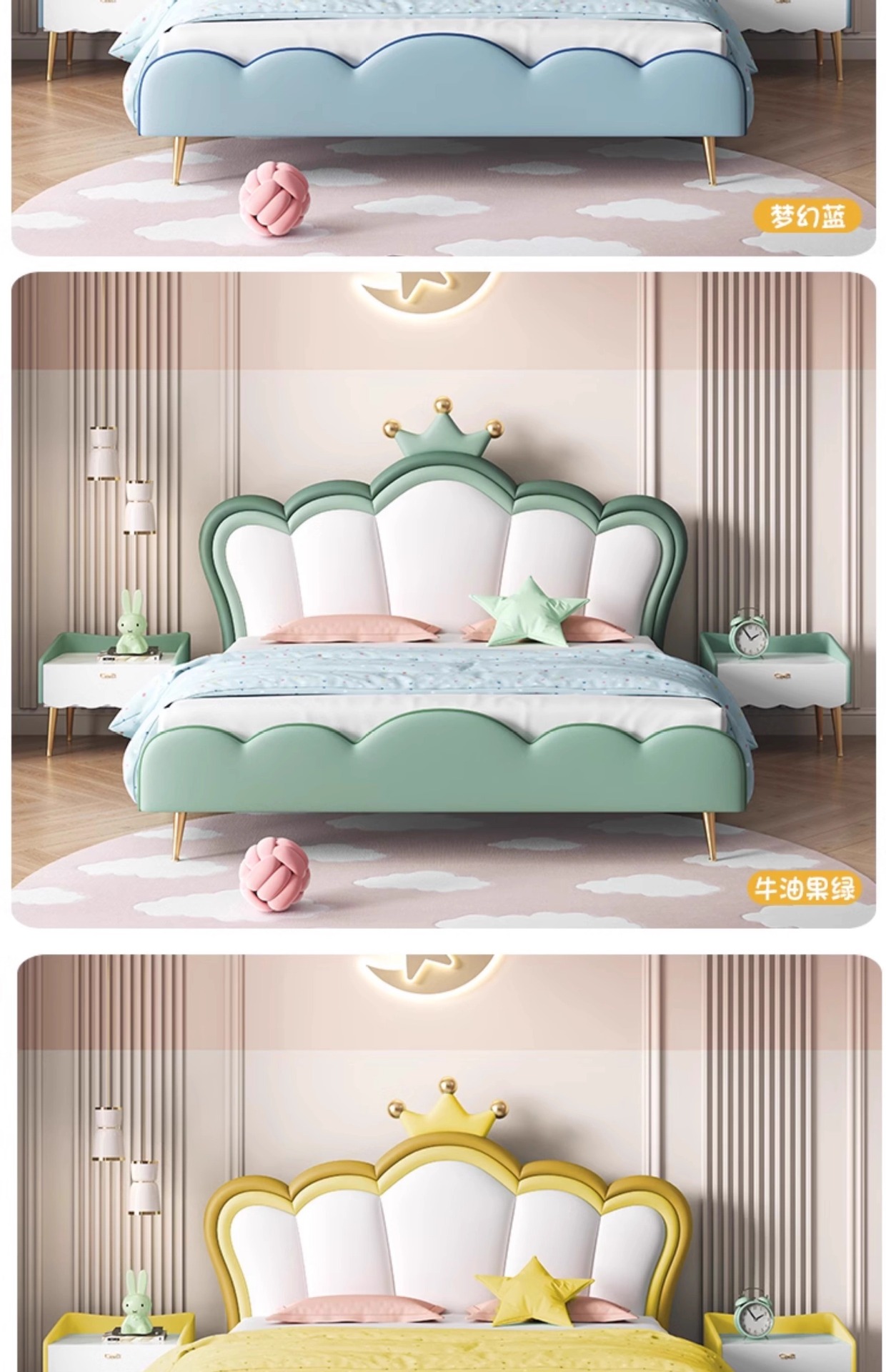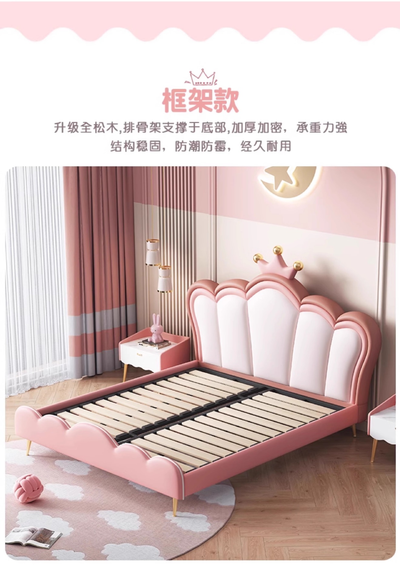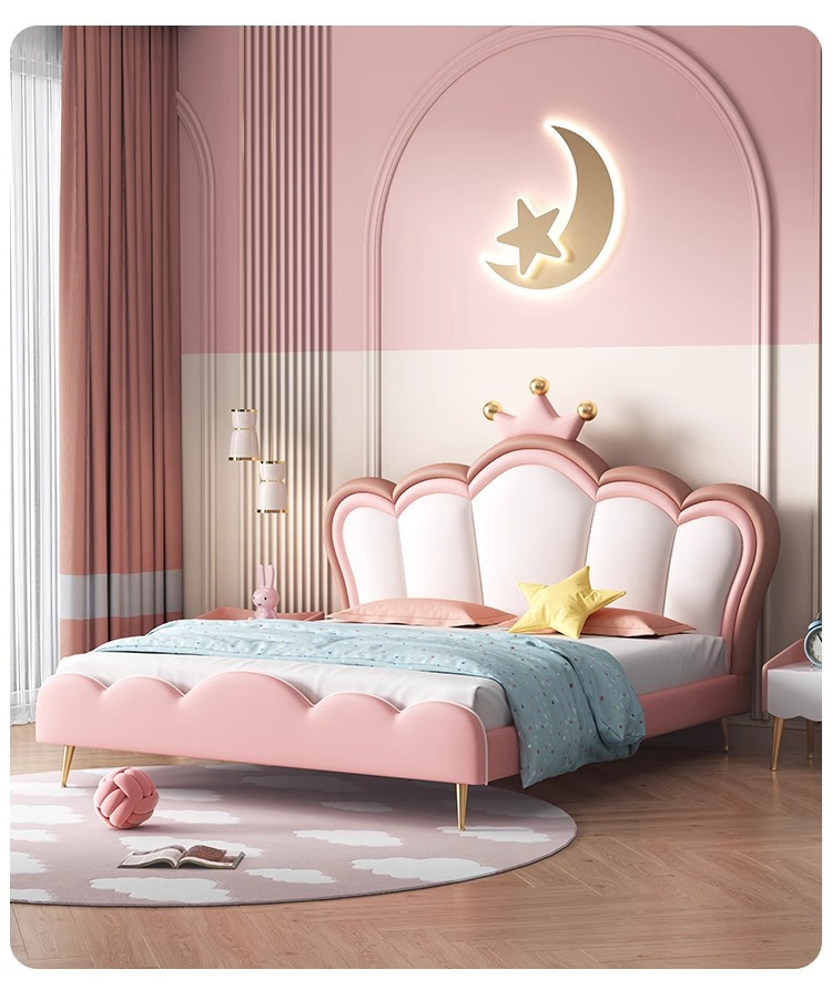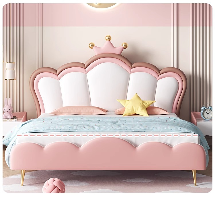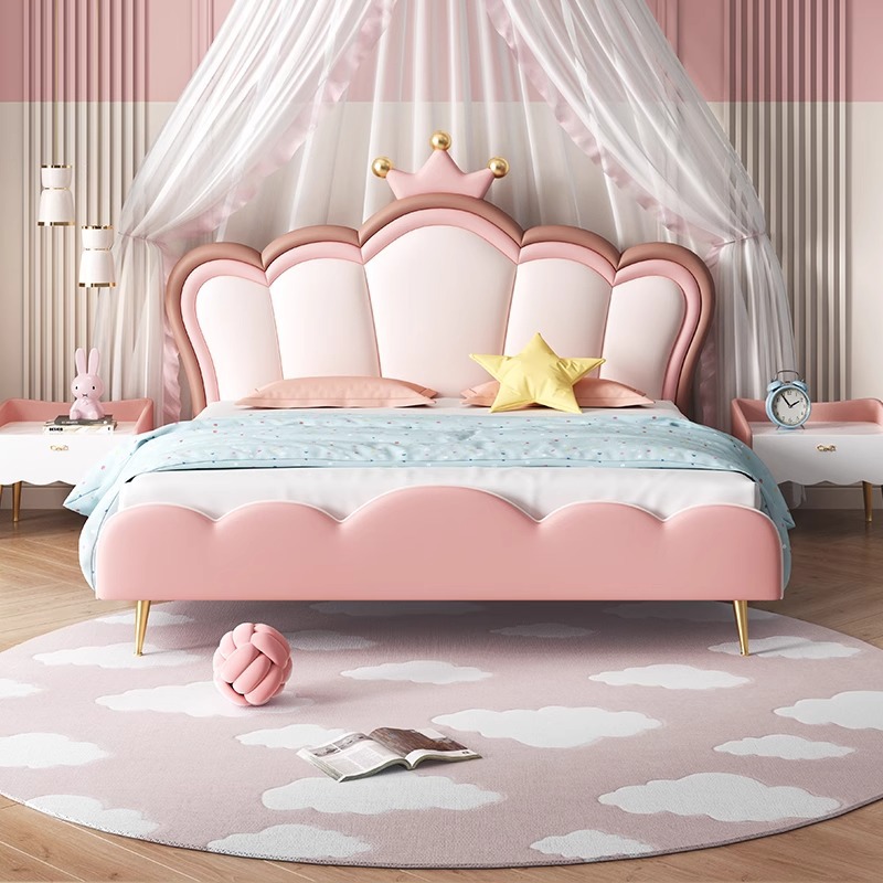 어린이 크라운 공주 침대 소녀 침대 핑크 소녀 소프트 침대 판타지 소녀 침대 라이트 럭셔리 인터넷 연예인 가죽 침대스토어 가기