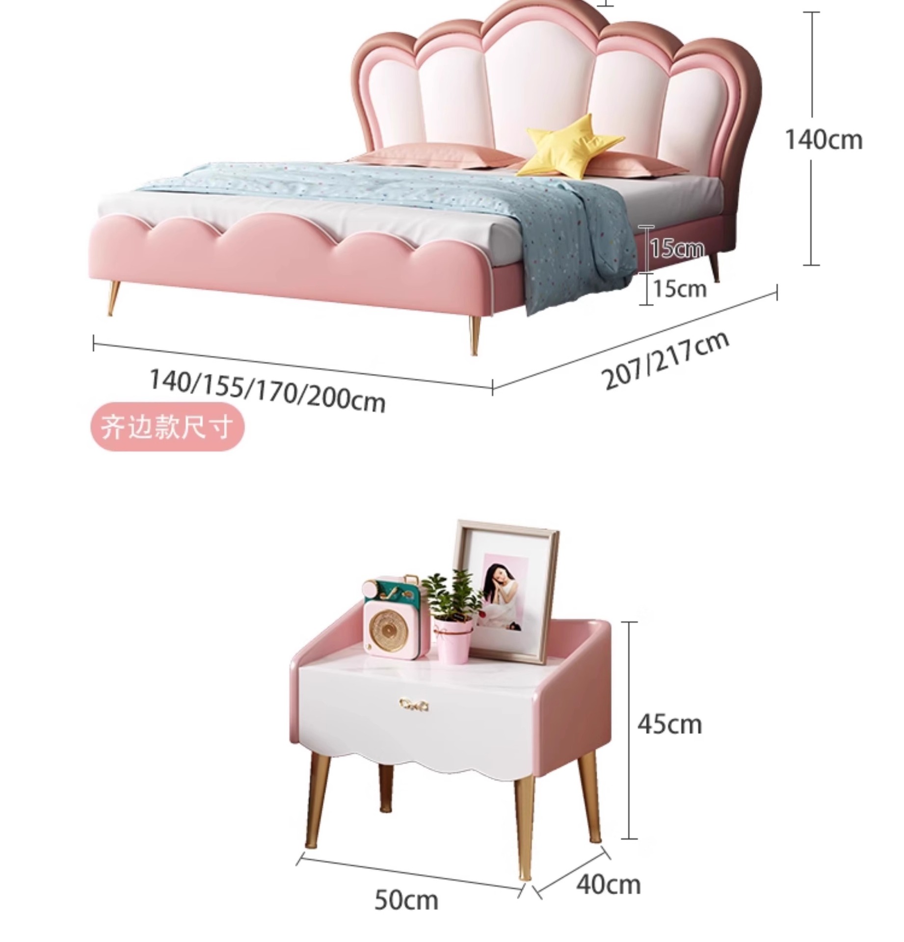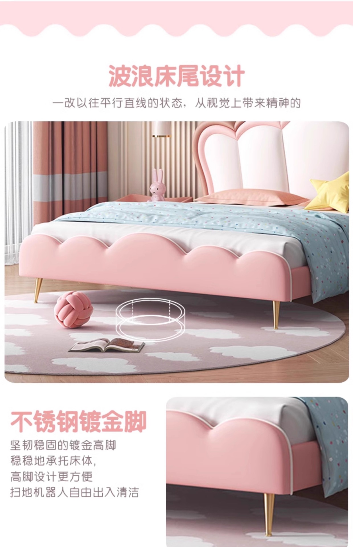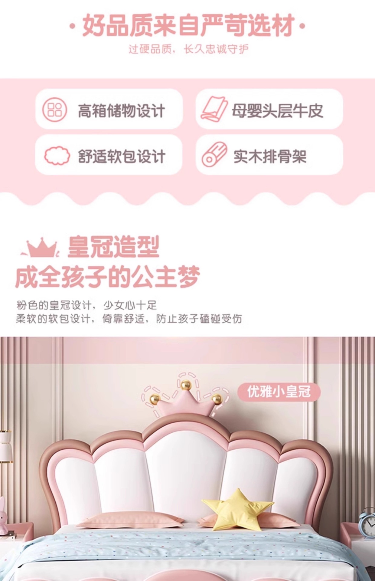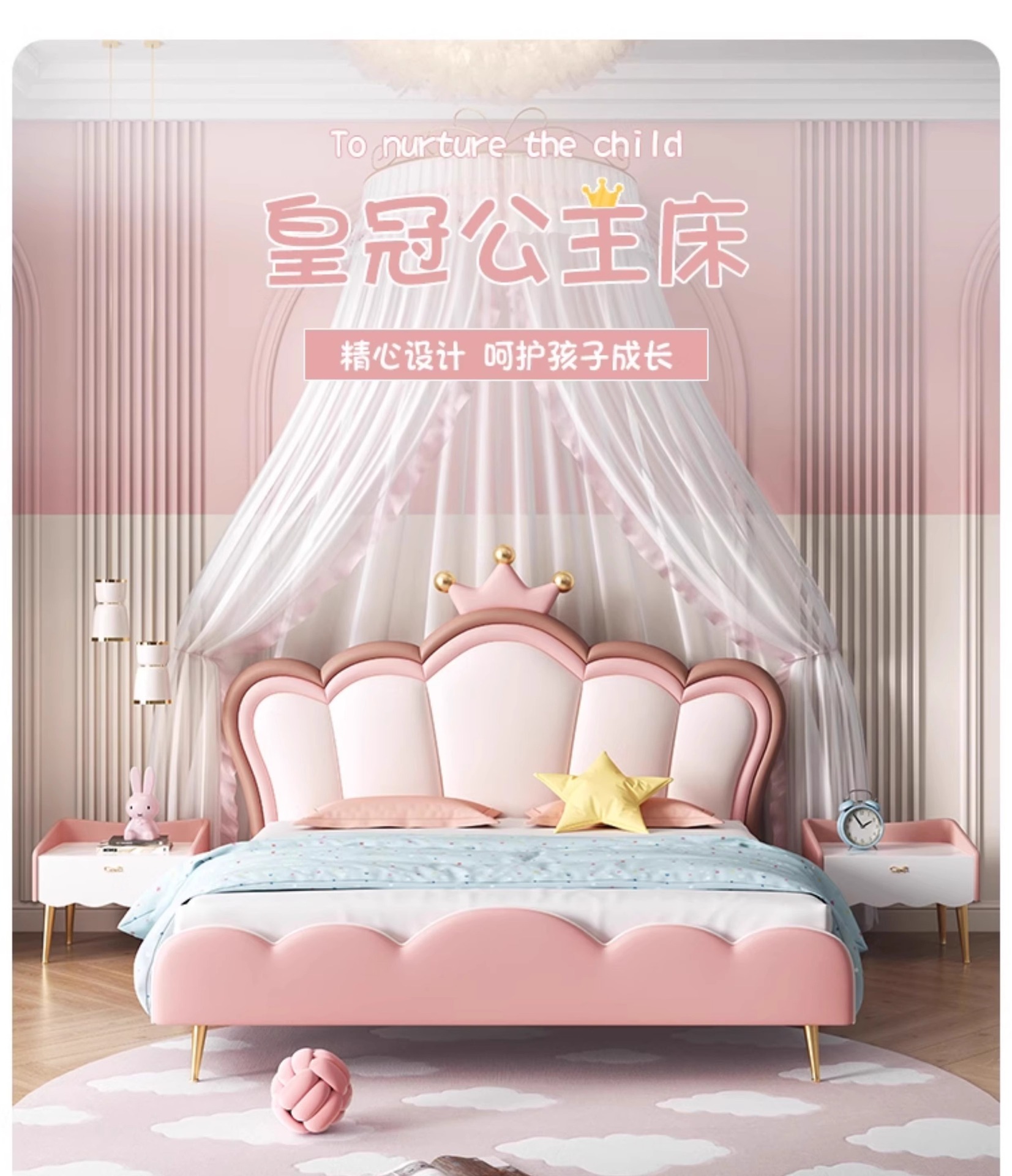어린이 크라운 공주 침대 소녀 침대 핑크 소녀 소프트 침대 판타지 소녀 침대 라이트 럭셔리 인터넷 연예인 가죽 침대스토어 가기