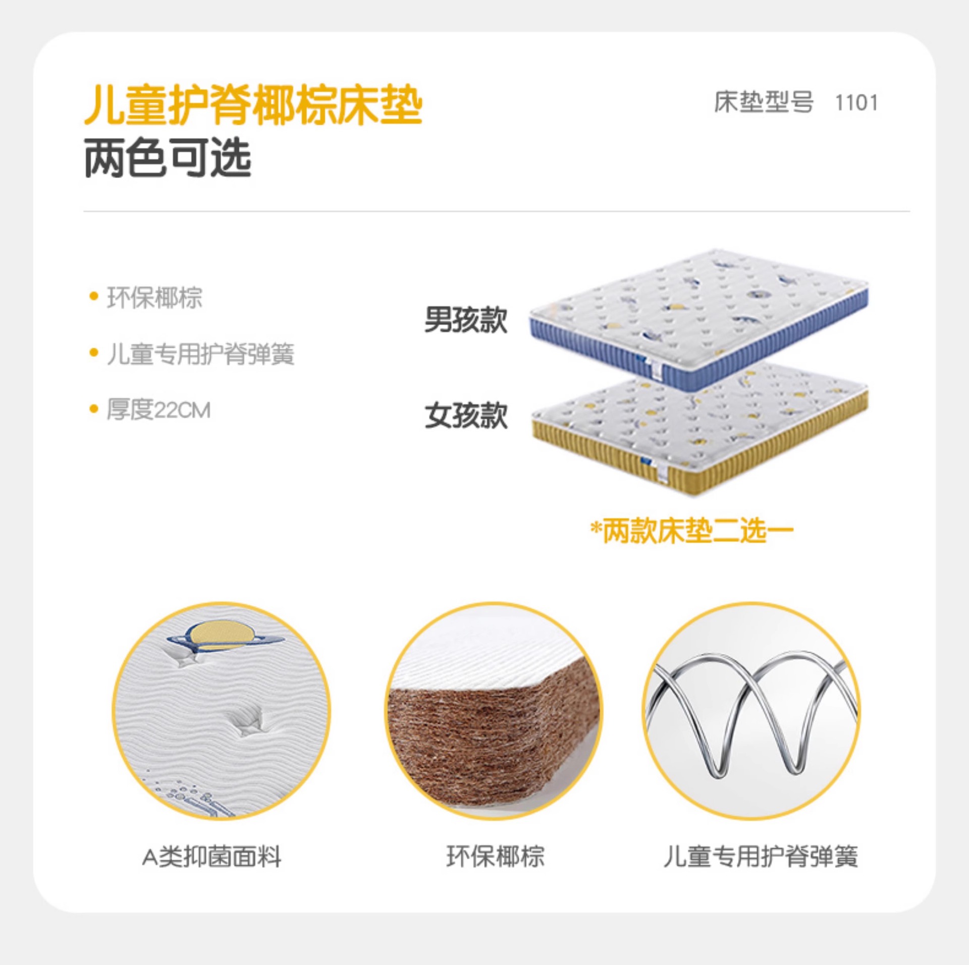 • [접촉면 나파가죽] 침대 + 어린이 척추보호 코코넛팜 매트리스