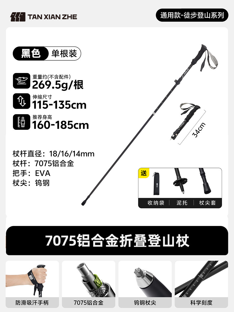 • [업그레이드 모델] 접이식 트레킹 폴 - 블랙(7075 알루미늄 합금)