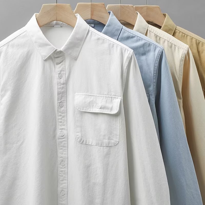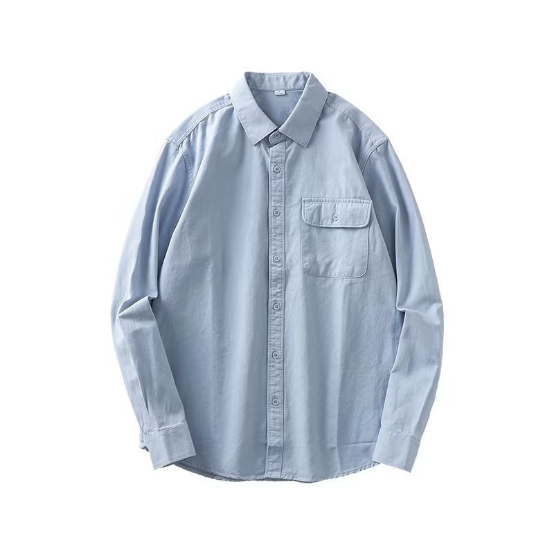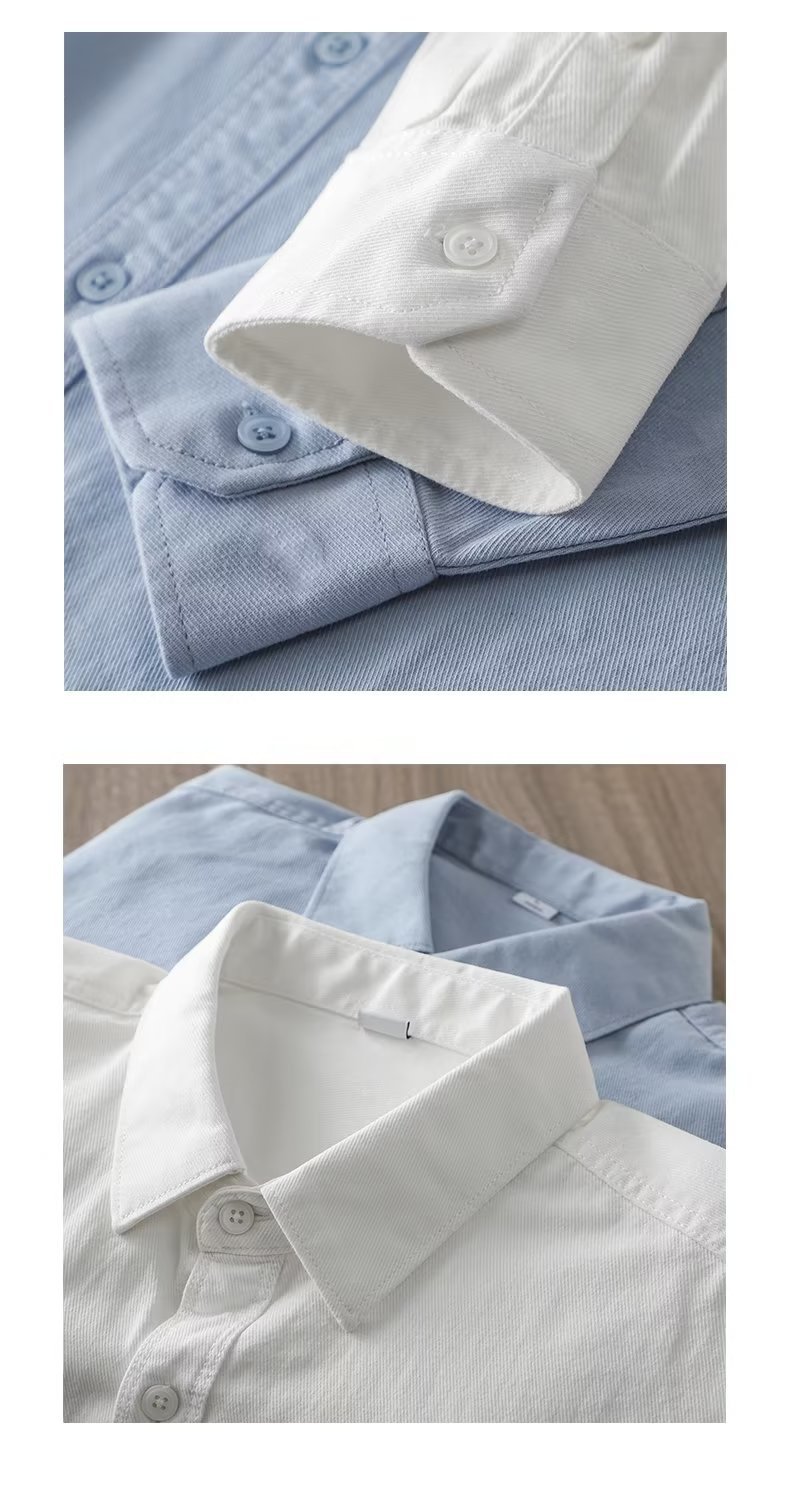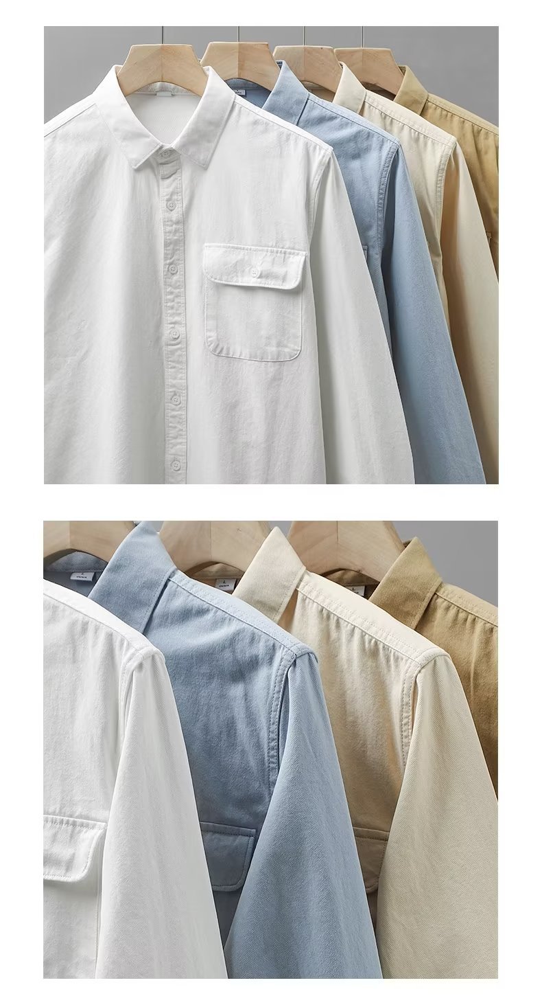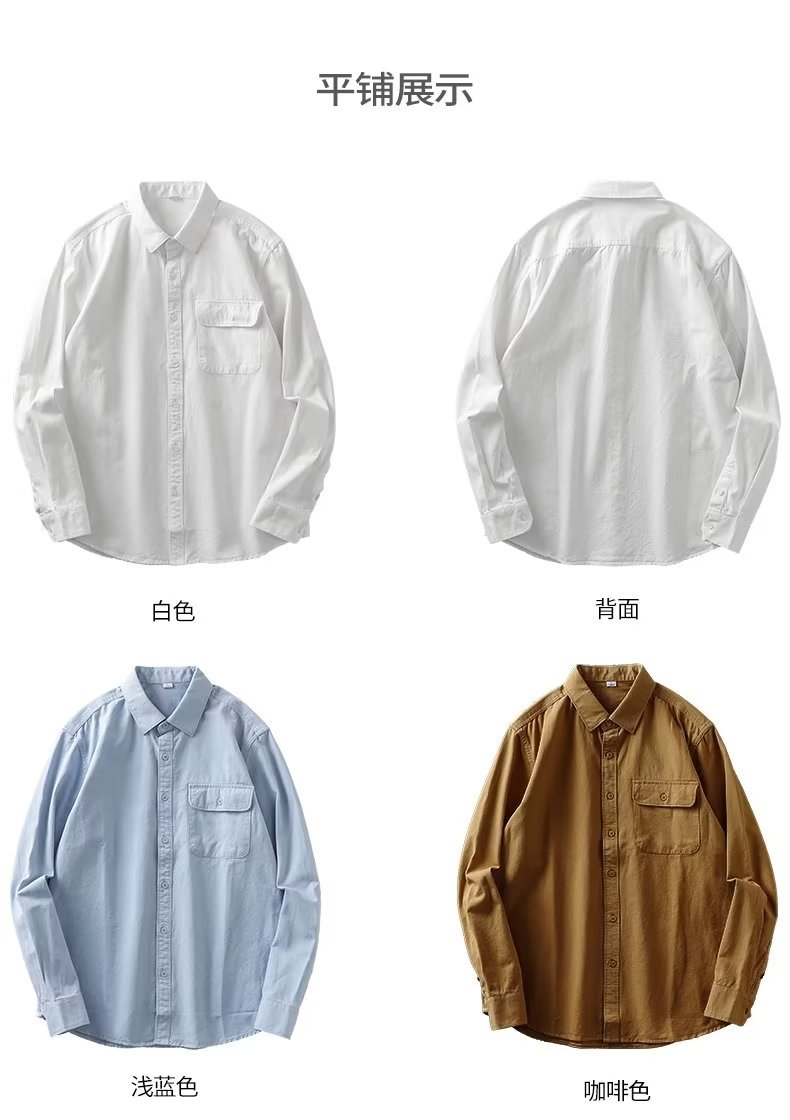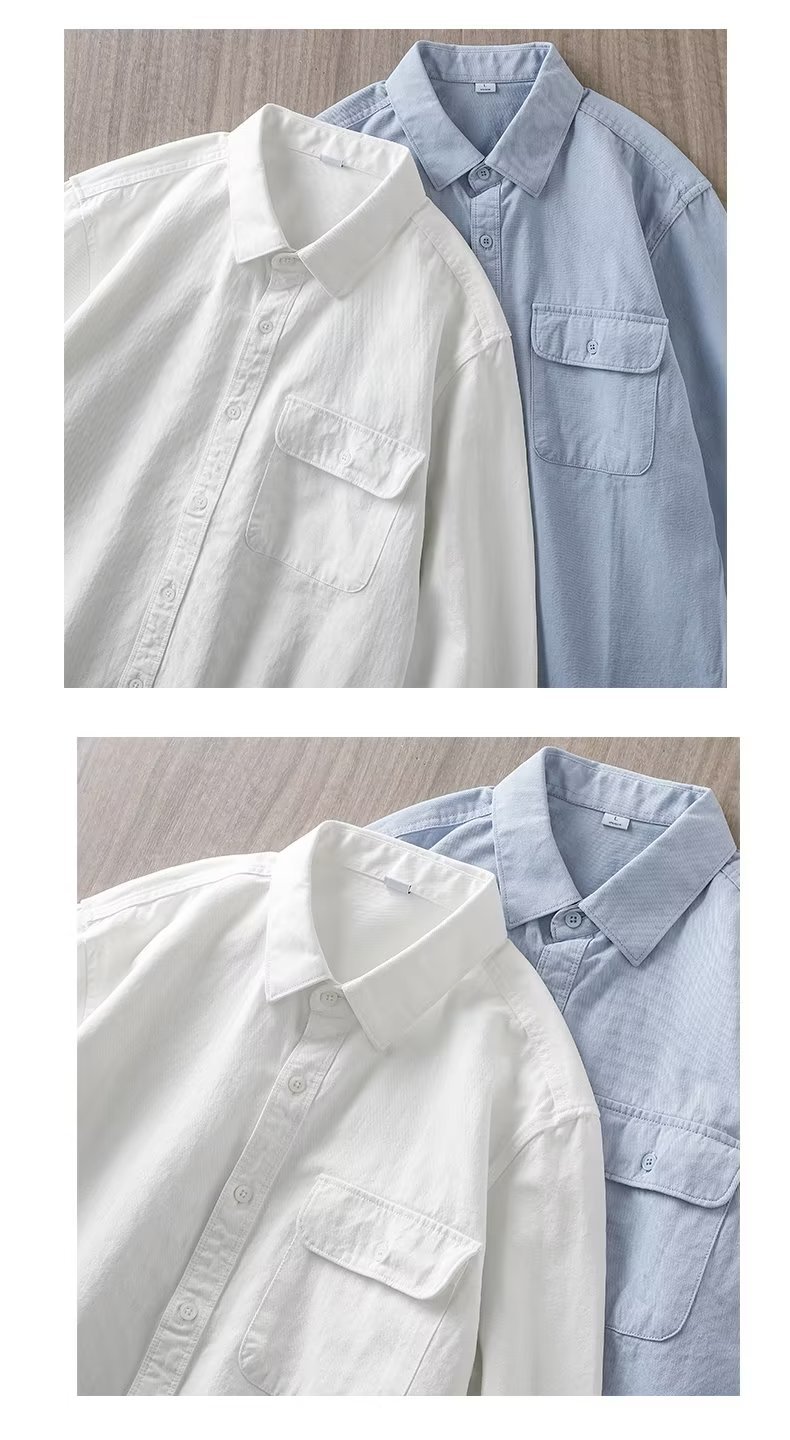 봄, 가을 남성용 미국 헤비급 순면 셔츠, 긴팔, 루즈하고 고급스러운 순백색 워크 셔츠 재킷스토어 가기