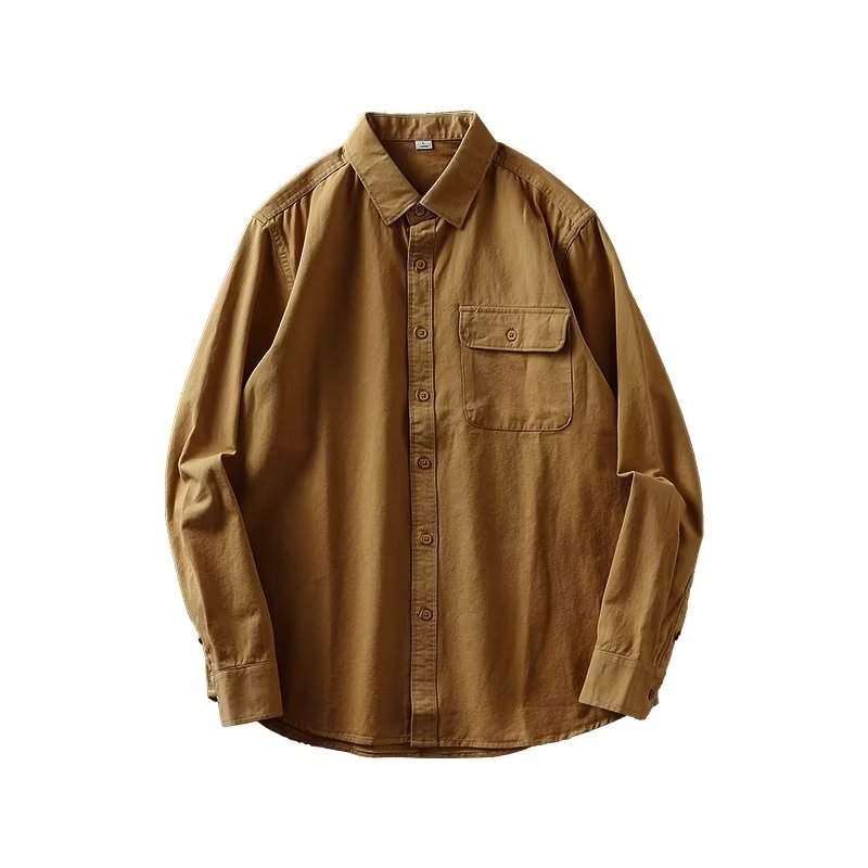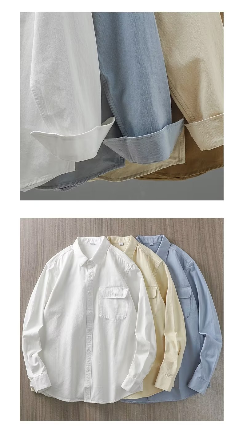 봄, 가을 남성용 미국 헤비급 순면 셔츠, 긴팔, 루즈하고 고급스러운 순백색 워크 셔츠 재킷