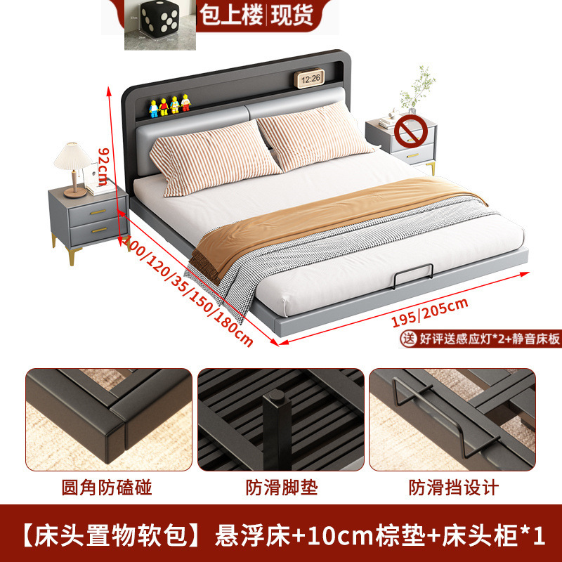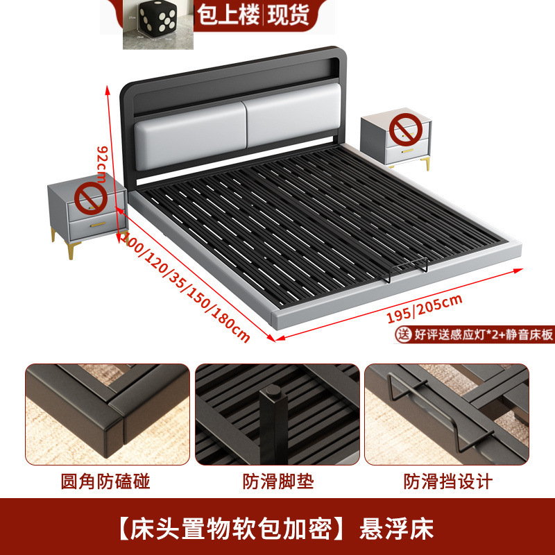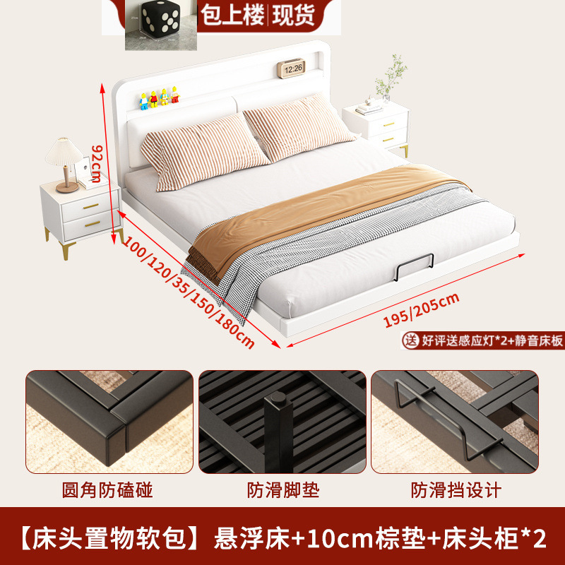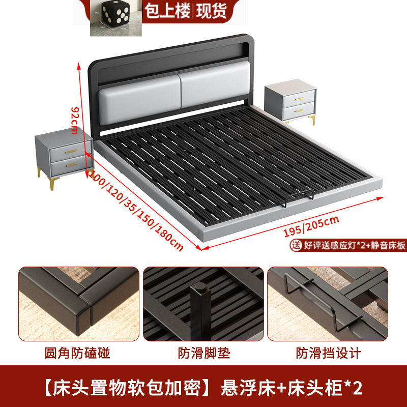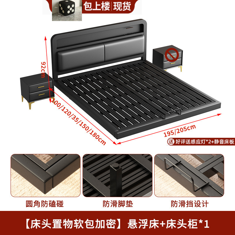 공중에 뜨는 침대 철제 침대 침실 스테인레스 스틸 공중에 뜨는 철제 프레임 침대 임대 주택 철제 프레임 침대 현대적인 간단한 더블 침대스토어 가기