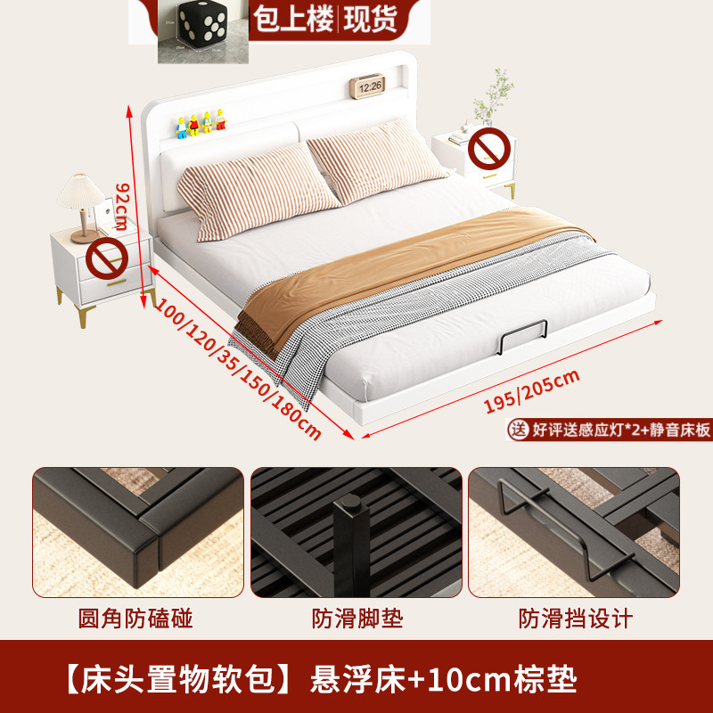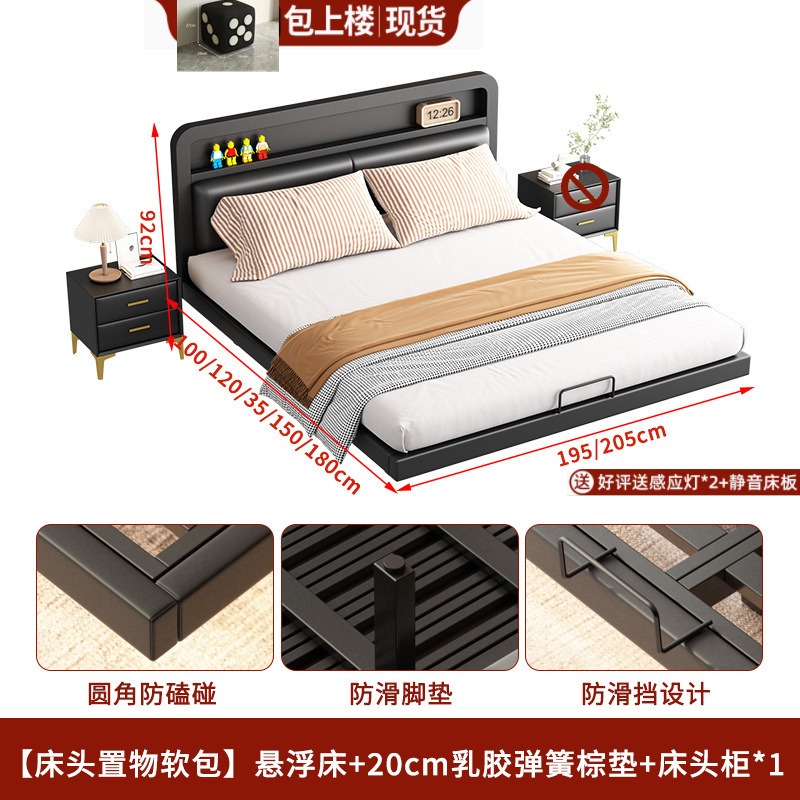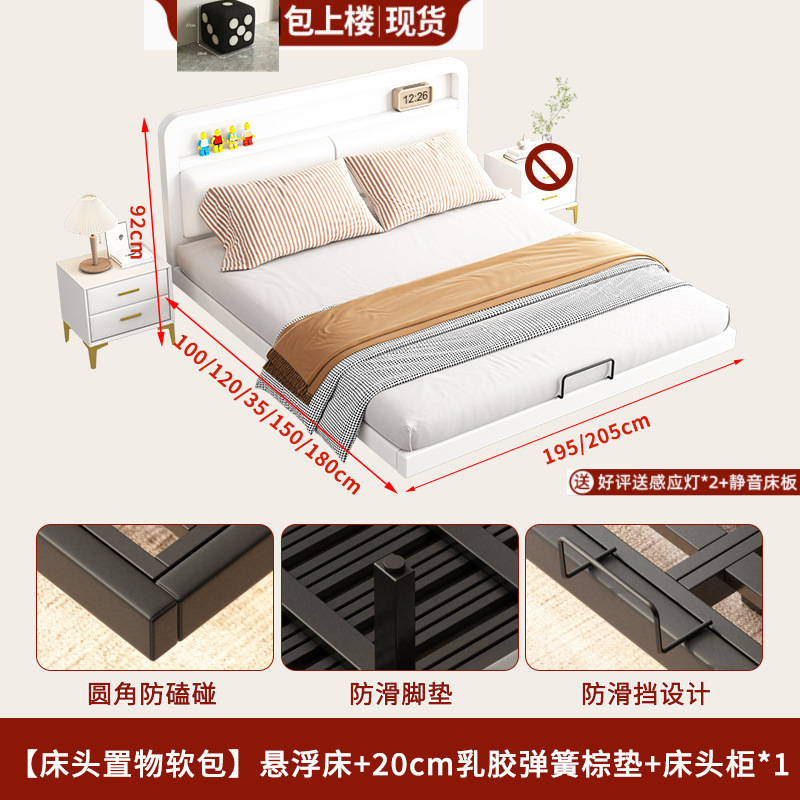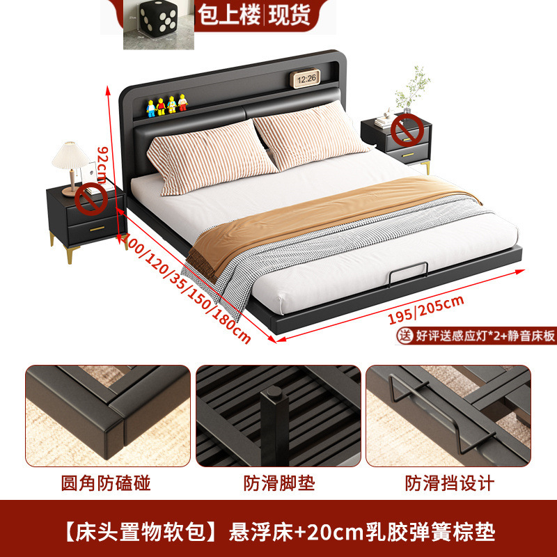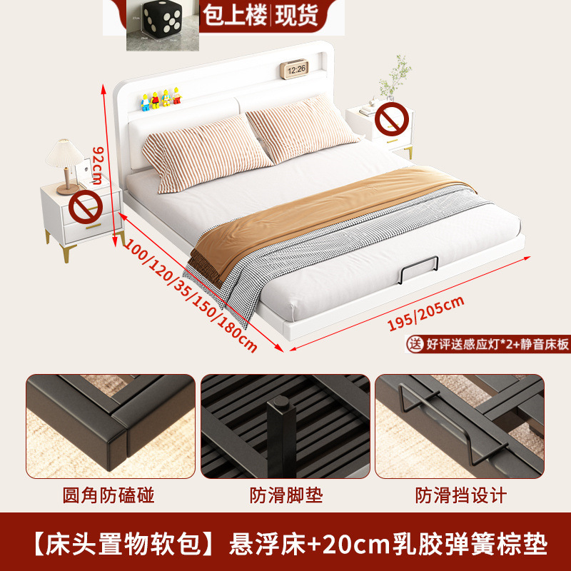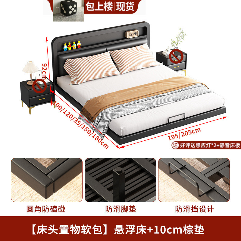 공중에 뜨는 침대 철제 침대 침실 스테인레스 스틸 공중에 뜨는 철제 프레임 침대 임대 주택 철제 프레임 침대 현대적인 간단한 더블 침대스토어 가기