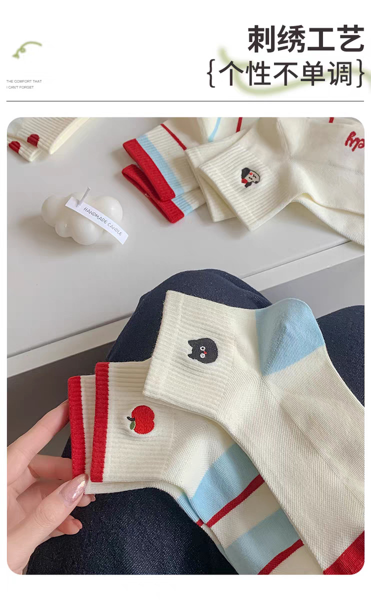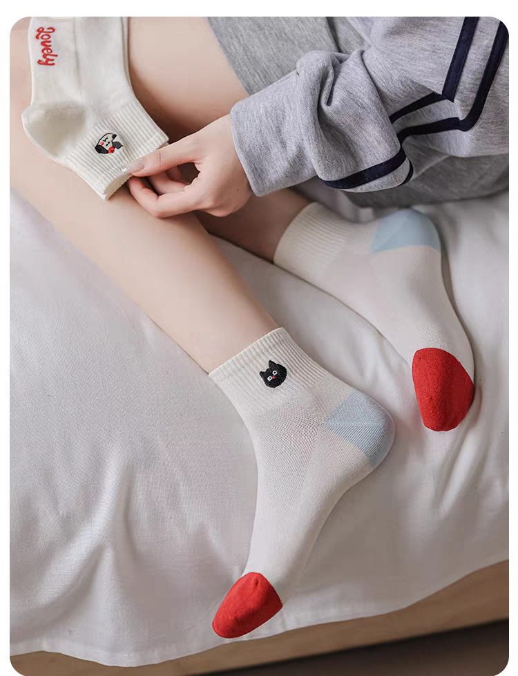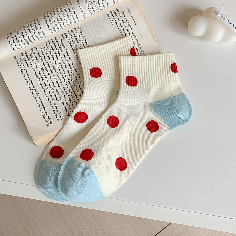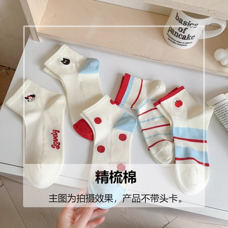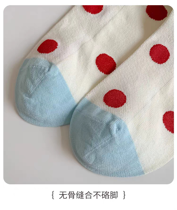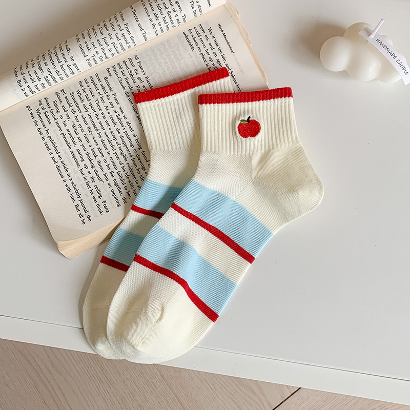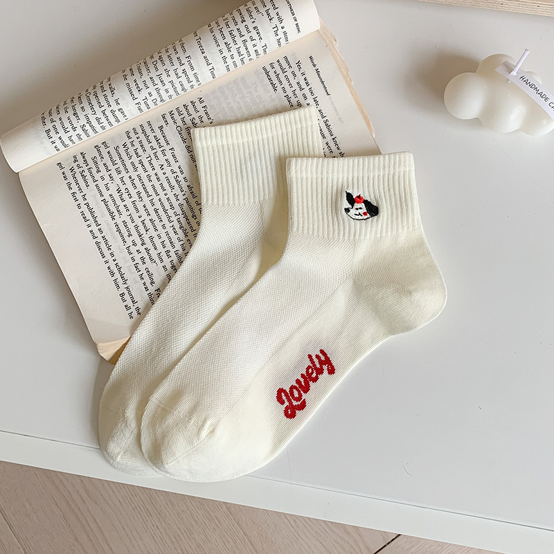 여성용 양말 짧은 여름 얇은 만화 자수 여성 봄 여름 흰색 소녀 줄무늬 폴카 도트 중간 길이면 양말스토어 가기