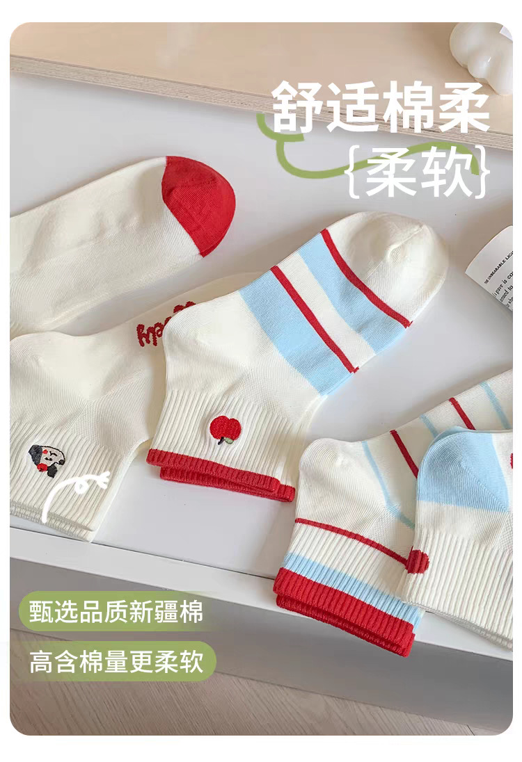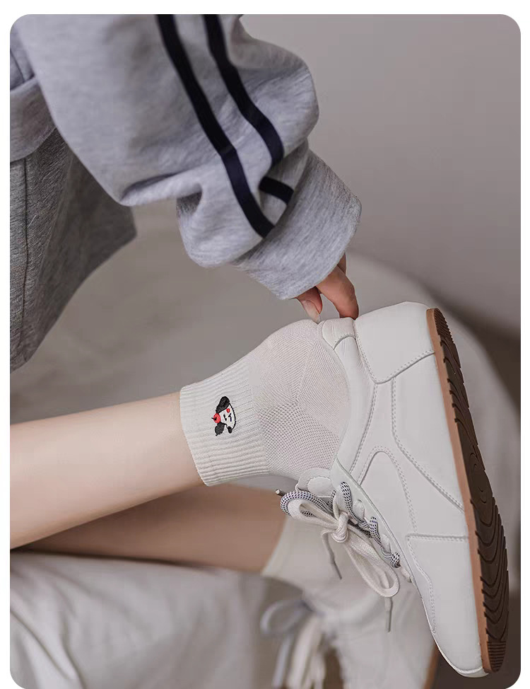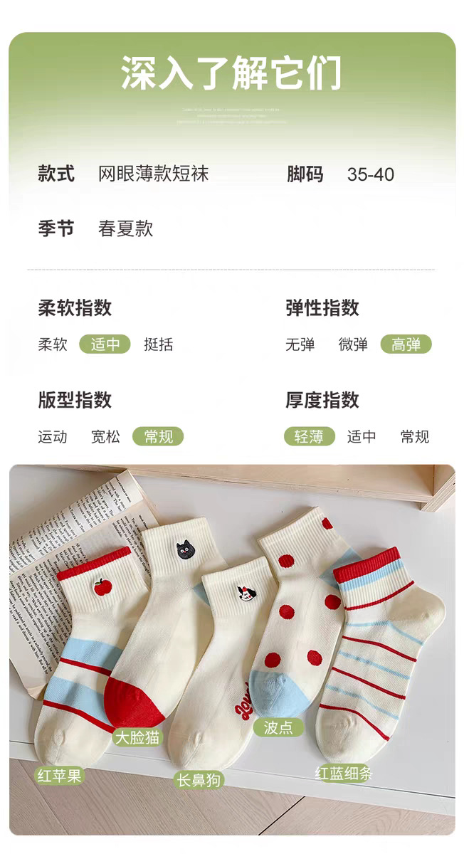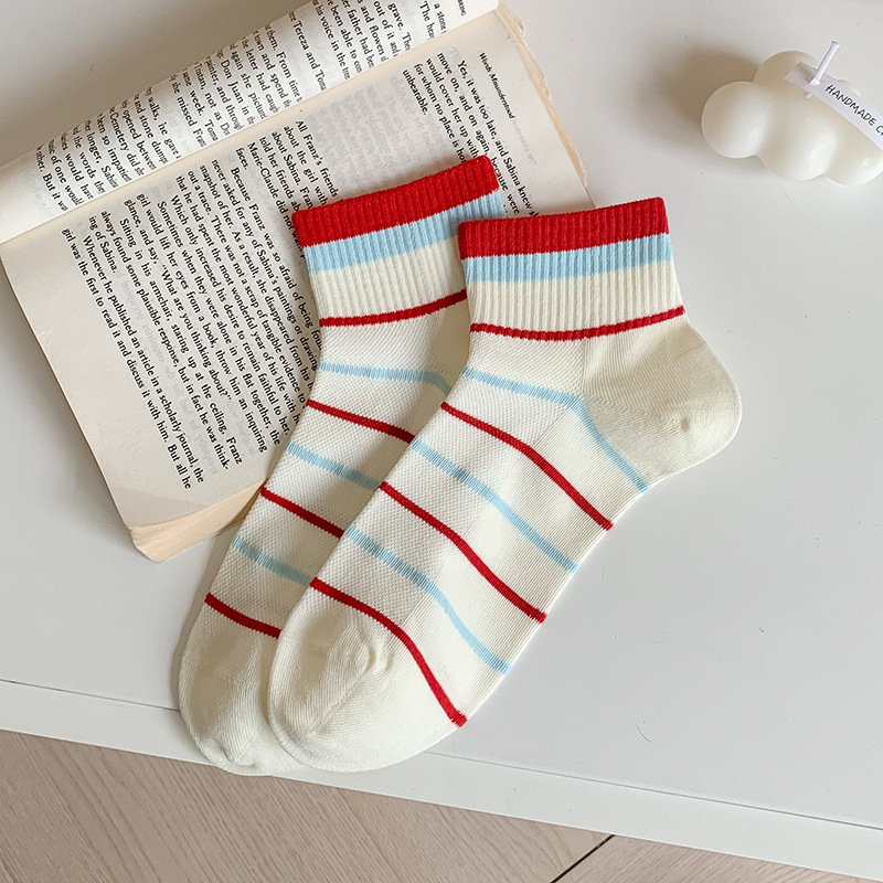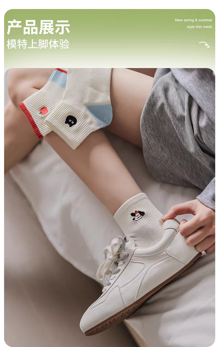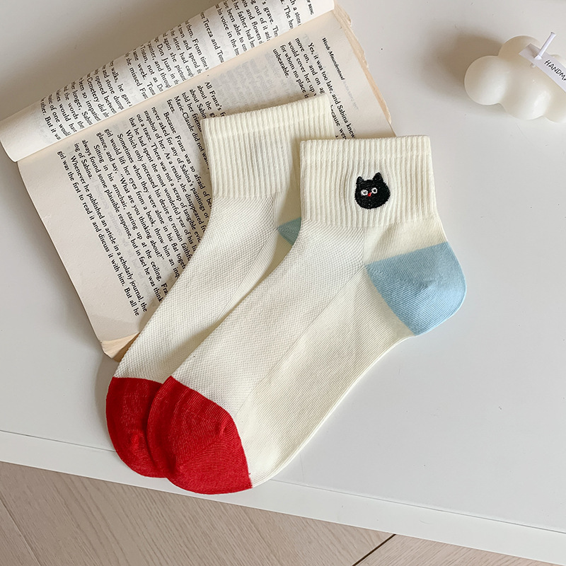 여성용 양말 짧은 여름 얇은 만화 자수 여성 봄 여름 흰색 소녀 줄무늬 폴카 도트 중간 길이면 양말스토어 가기