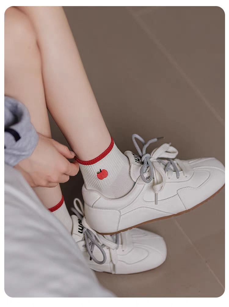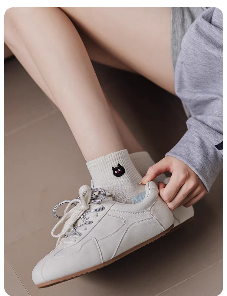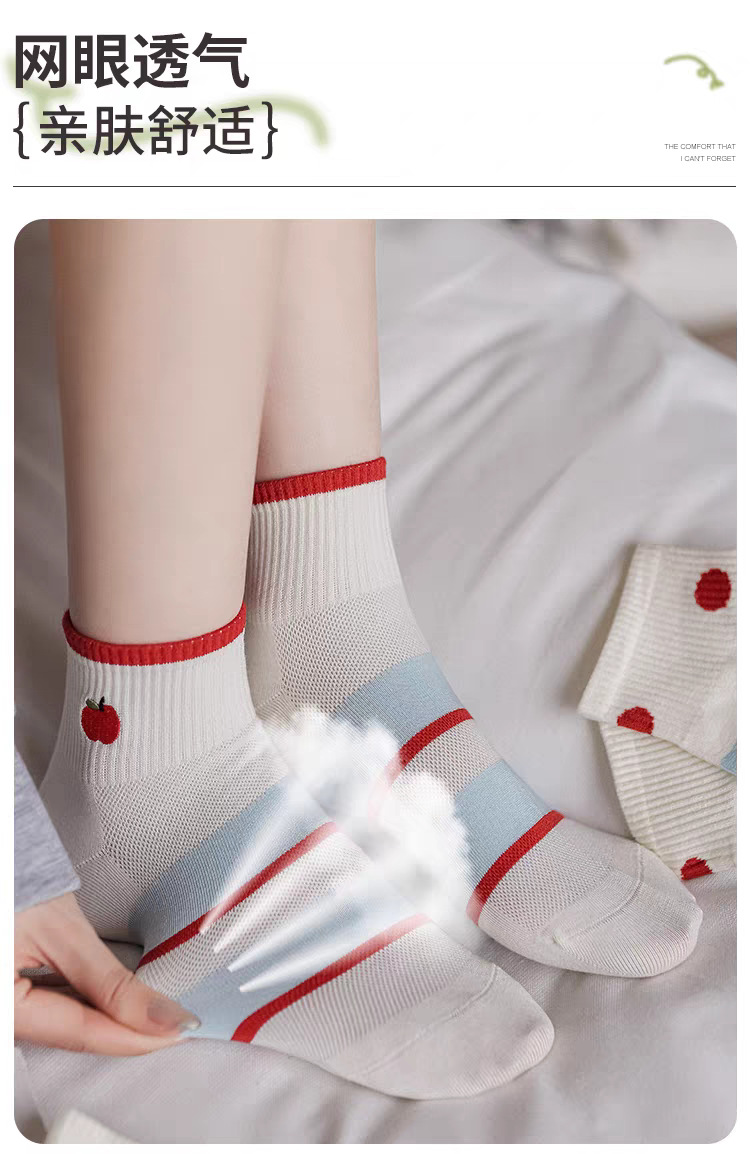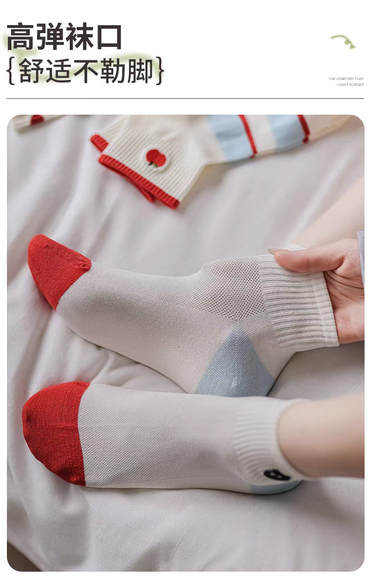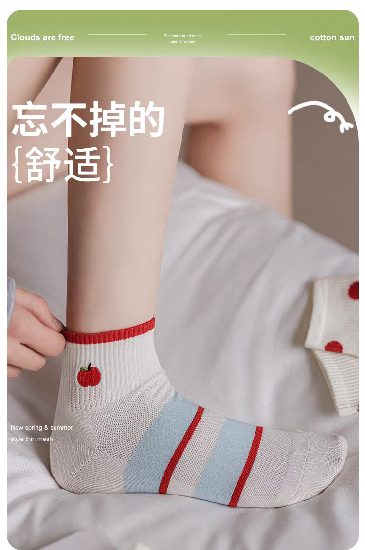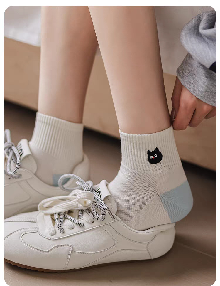 여성용 양말 짧은 여름 얇은 만화 자수 여성 봄 여름 흰색 소녀 줄무늬 폴카 도트 중간 길이면 양말스토어 가기