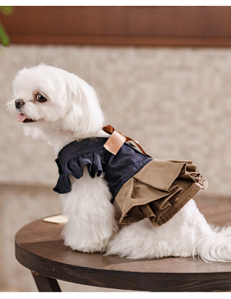 애완 동물 옷 봄, 여름, 가을 플라잉 슬리브 레이스 스커트 개 영국 스타일 조끼 테디 몰타 옷스토어 가기