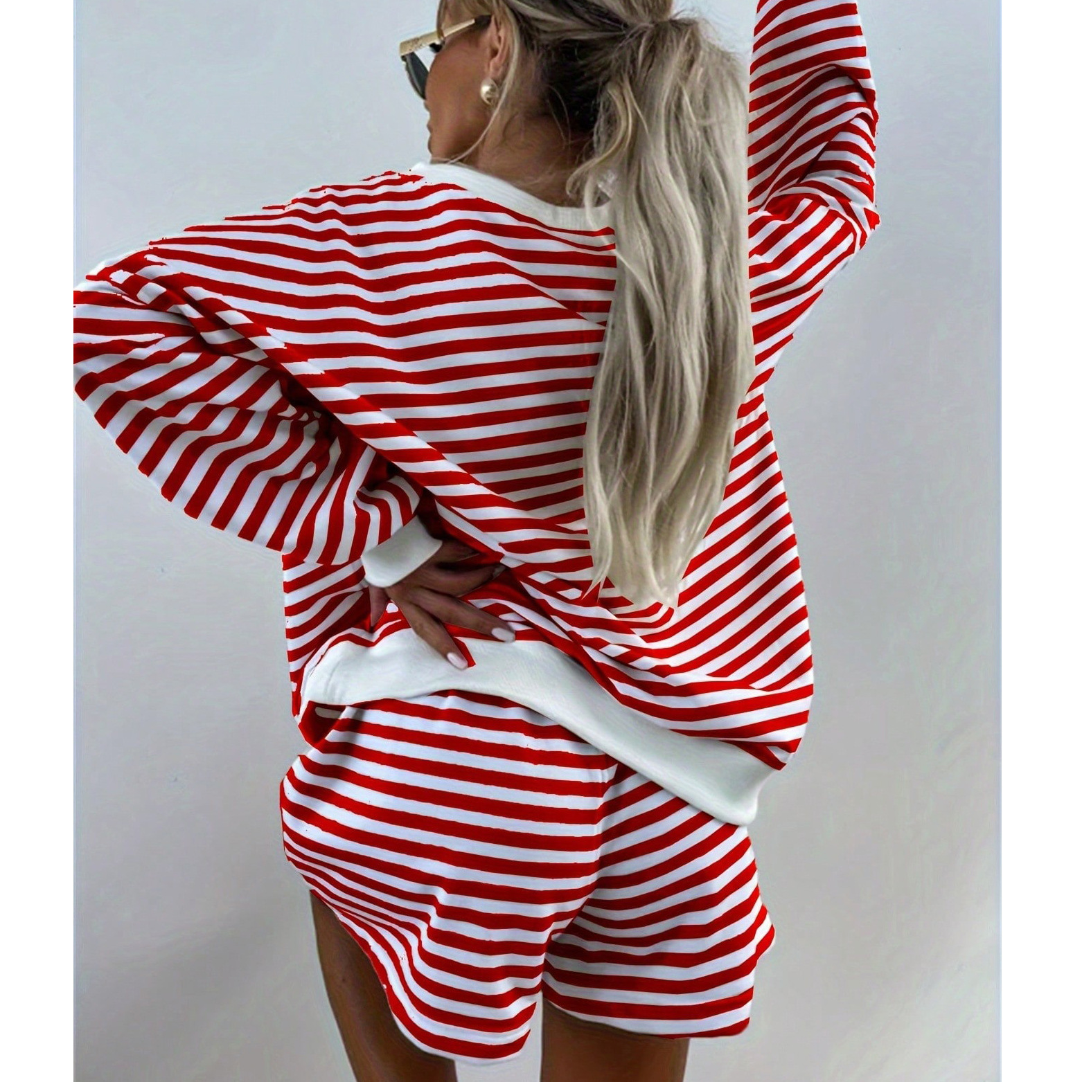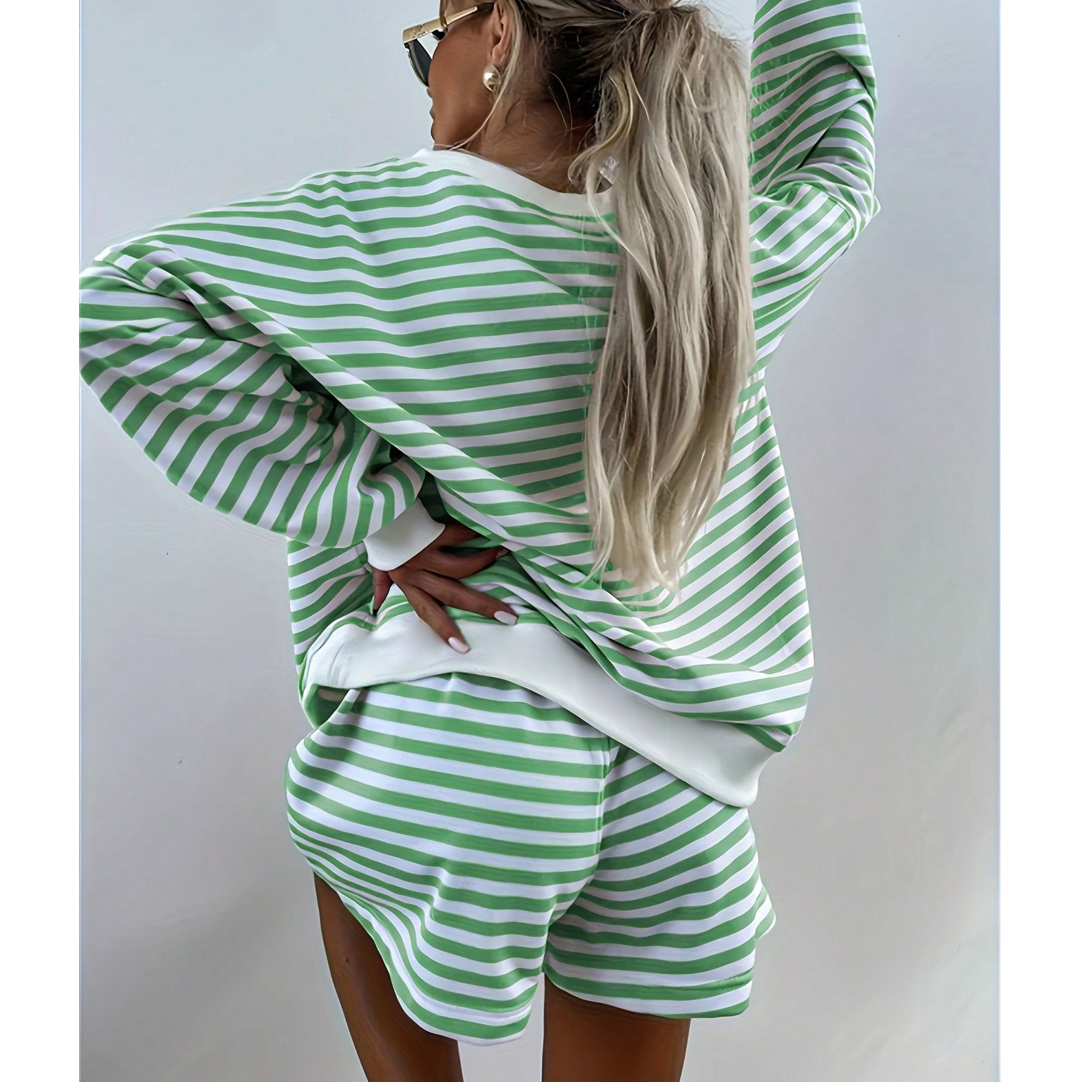 유럽풍 인스타 감성 스트라이프 홈웨어 파자마 세트 여성용 V넥 멀티컬러 긴팔 반바지 캐주얼웨어스토어 가기