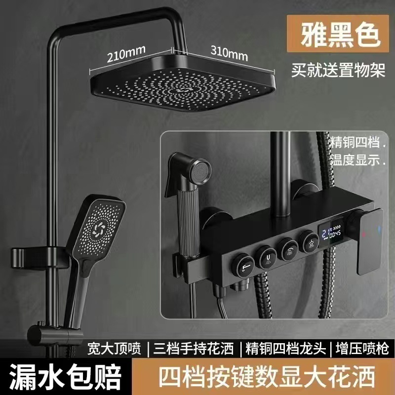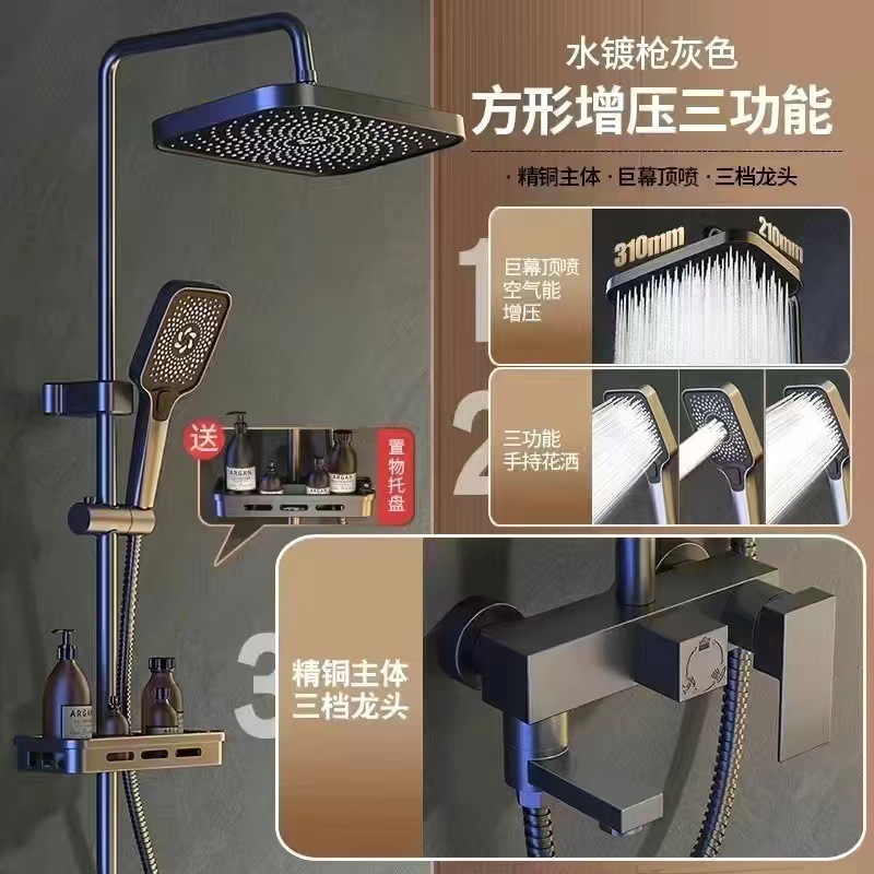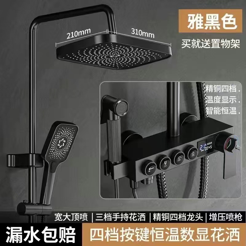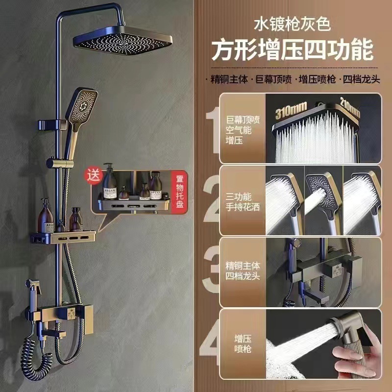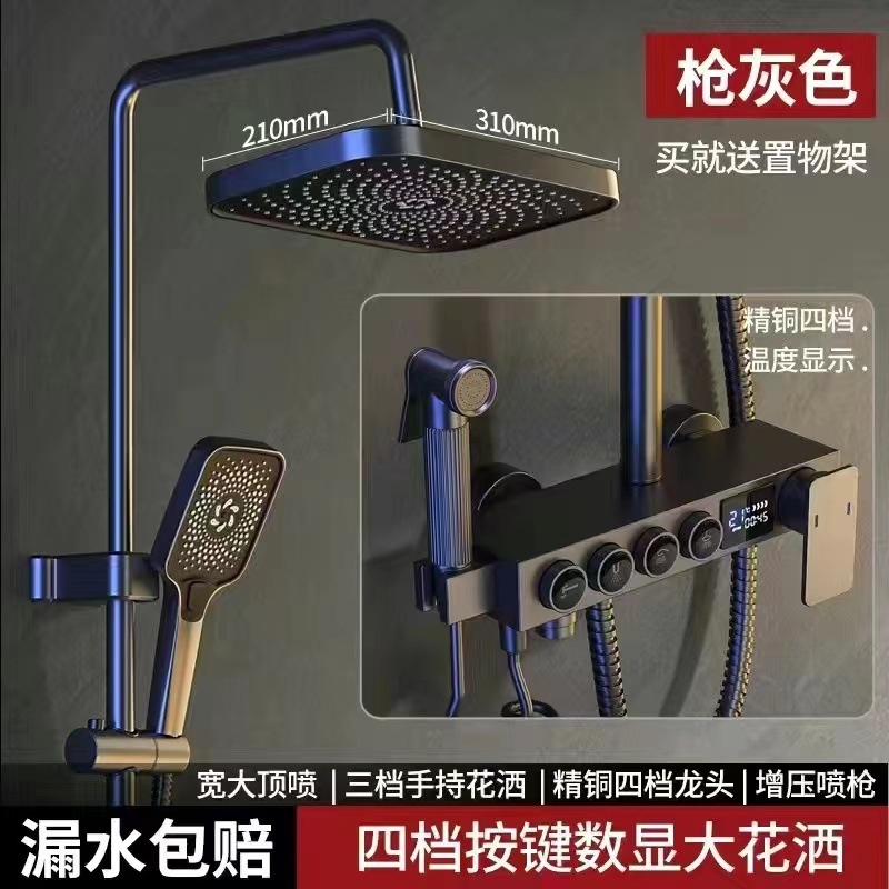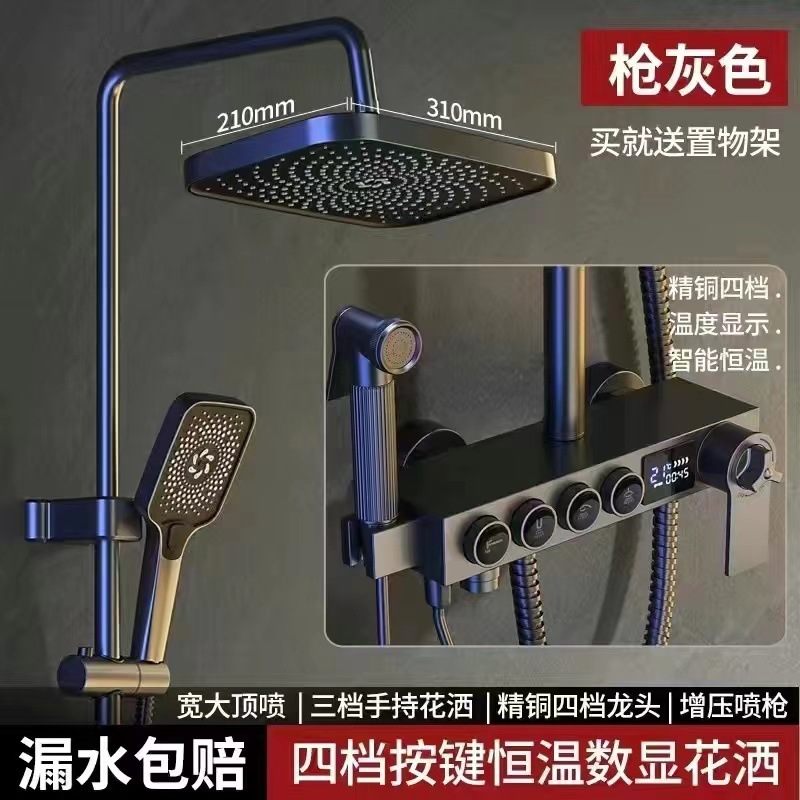 지능형 전체 구리 항온 샤워 키트 가정용 디지털 디스플레이 욕실 레인 부스터 건 그레이 샤워 헤드
