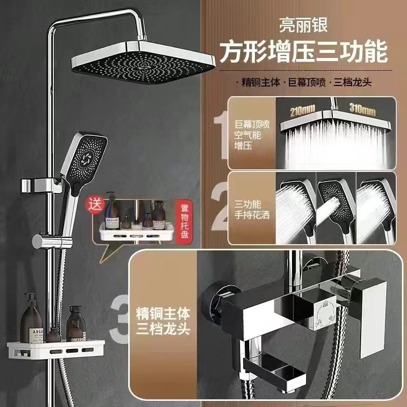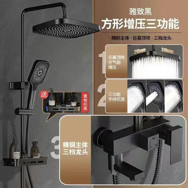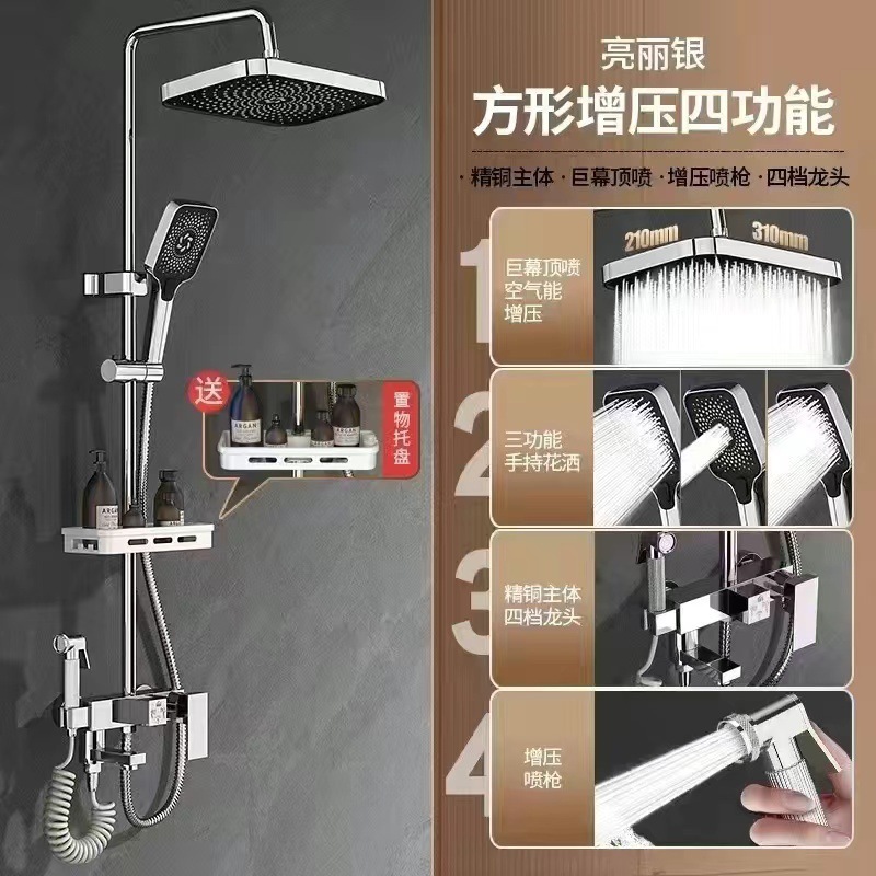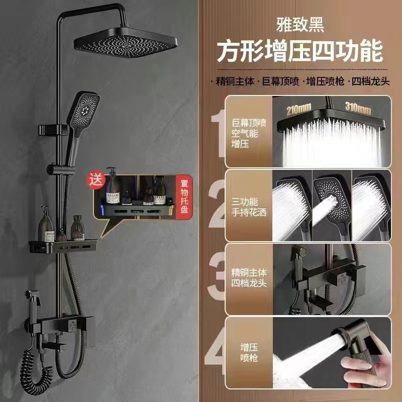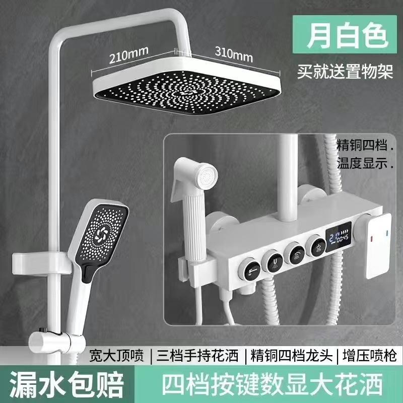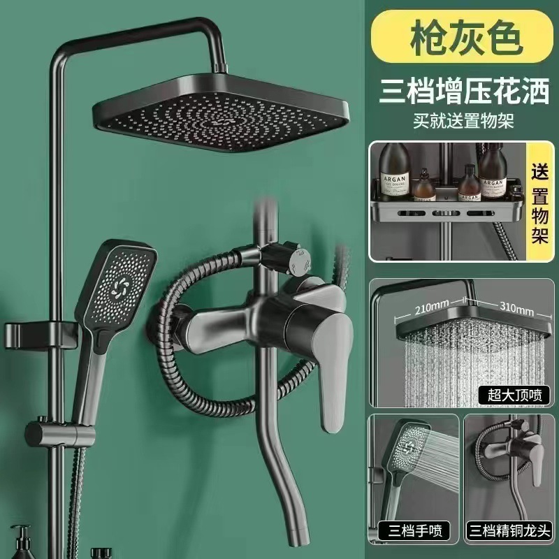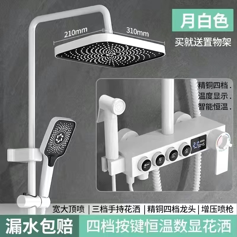 지능형 전체 구리 항온 샤워 키트 가정용 디지털 디스플레이 욕실 레인 부스터 건 그레이 샤워 헤드