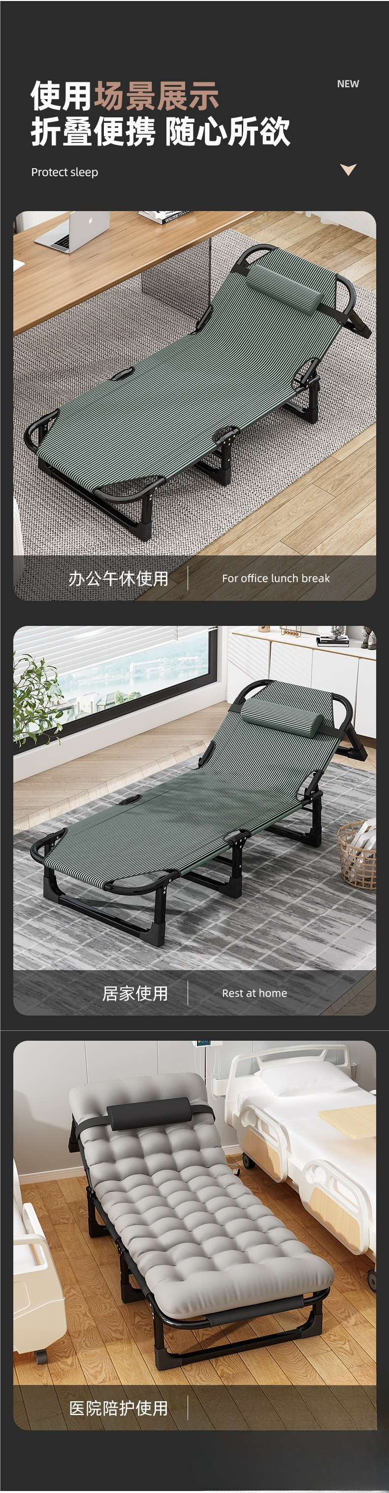 1인용 접이식 침대 시트, 간이 점심시간, 사무실, 성인 낮잠, 캠프용 간이 침대, 동반자, 편리한 안락의자