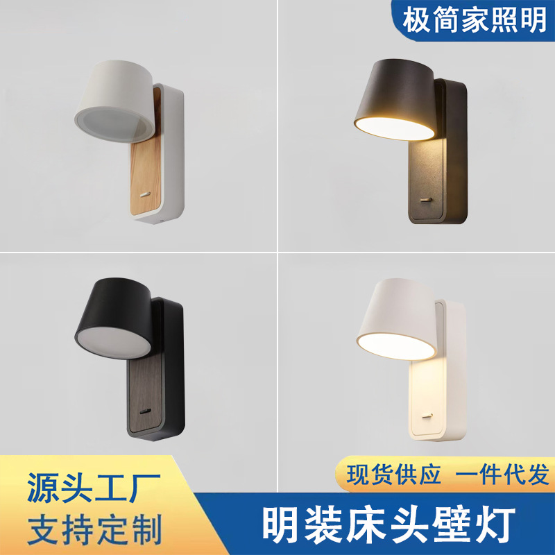크로스보더 독서 벽등, 침대 옆 독서 벽등, 회전 및 각도 조절 가능, 스위치 포함, 침실 침대 옆 벽등