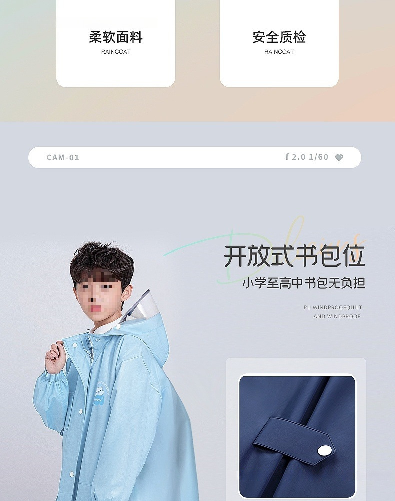 남아, 여아, 중학생, 자전거, 초등학생, 학교용 아동 비옷, 큰 어린이, 긴 전신 방수 비옷
