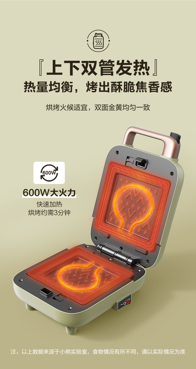 곰 샌드위치 메이커 DBC-C06M1 전기 베이킹 팬 상단 및 하단 접시 탈착식 및 세척 가능한 양면 가열 아침 식사 메이커 트위스터스토어 가기
