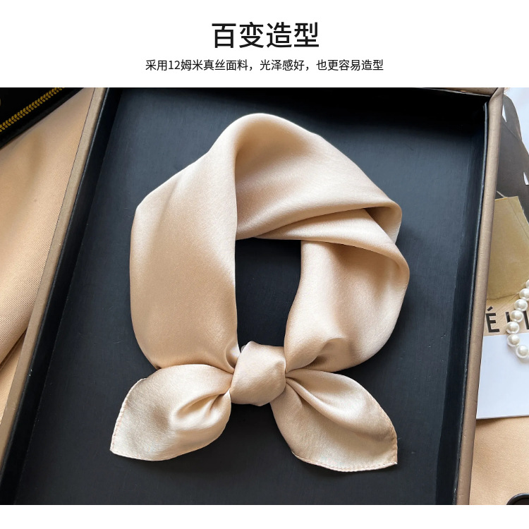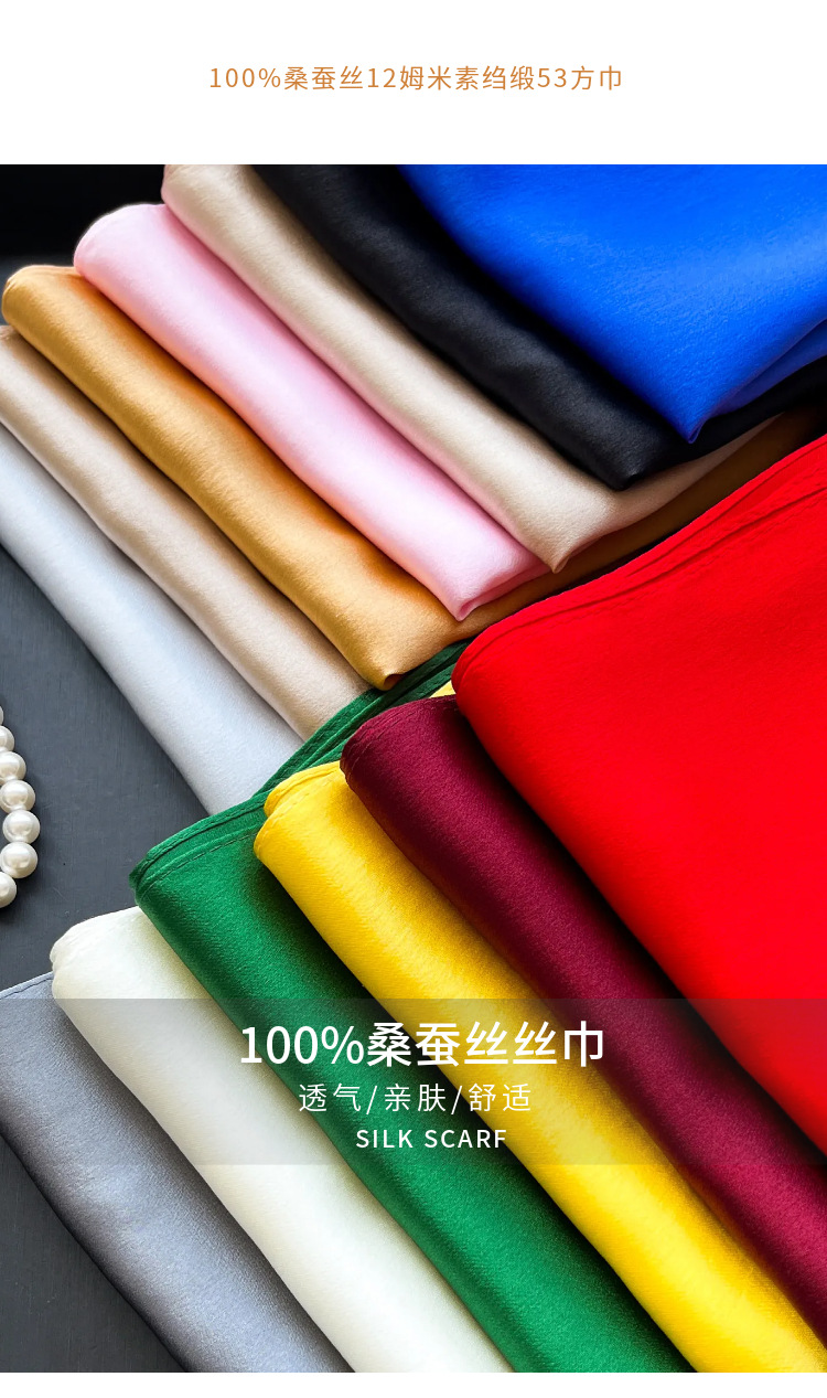 항저우 솔리드 컬러 뽕나무 실크 스카프 여성 여름 실크 스카프 53 작은 사각형 스카프 하이 엔드 일반 실크 스카프