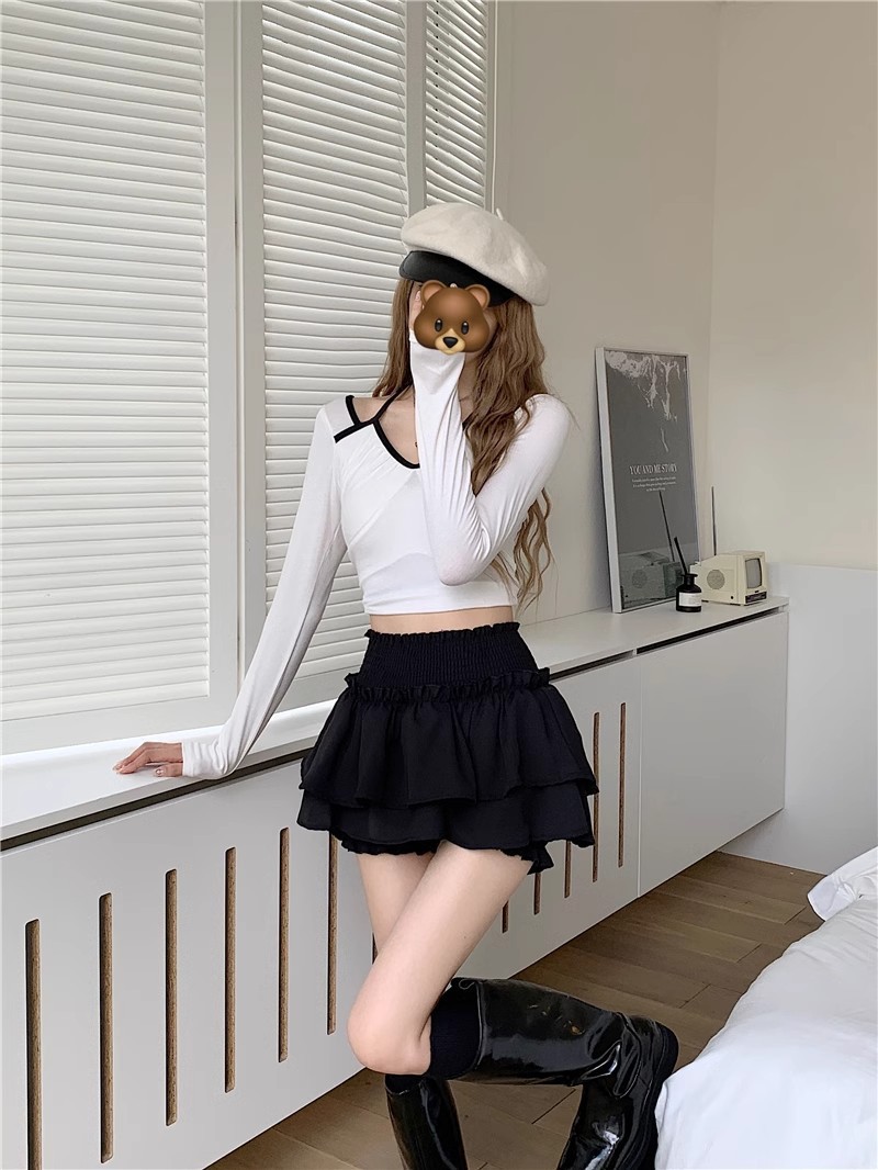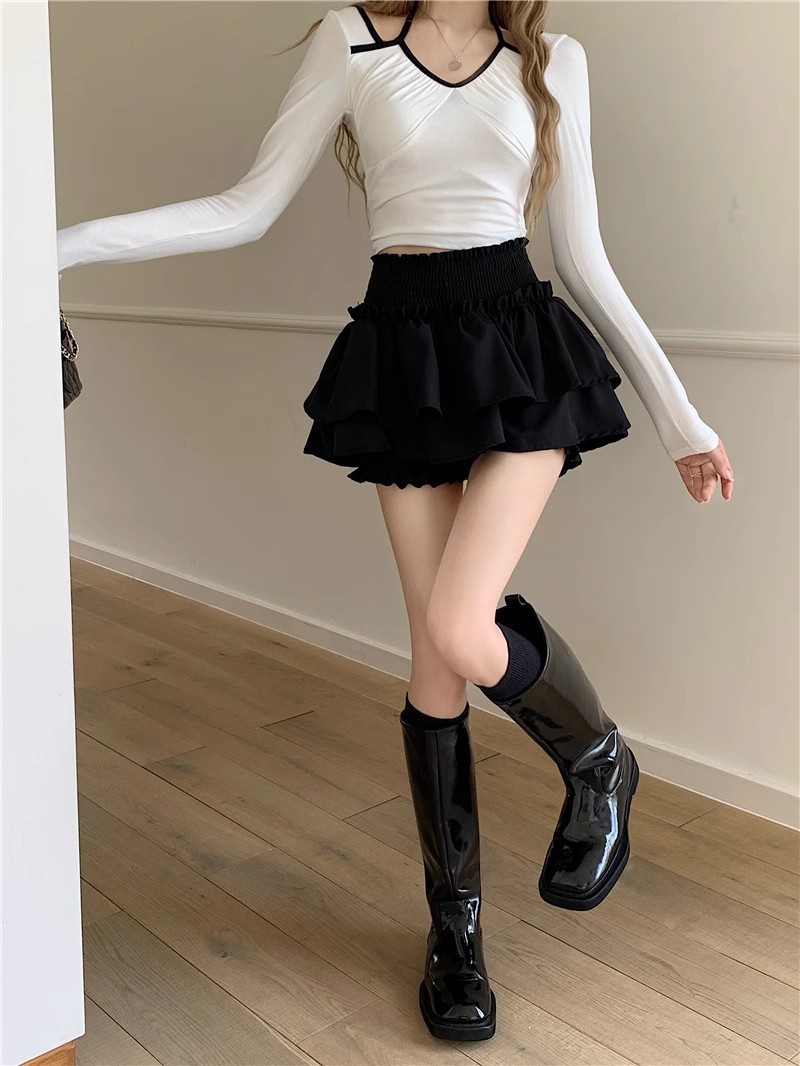 블랙 플리츠 스커트 여성 여름 발레 스타일 케이크 스커트 하이 웨이스트 슬림 에이라인 스커트 노출 방지 반바지 스커트