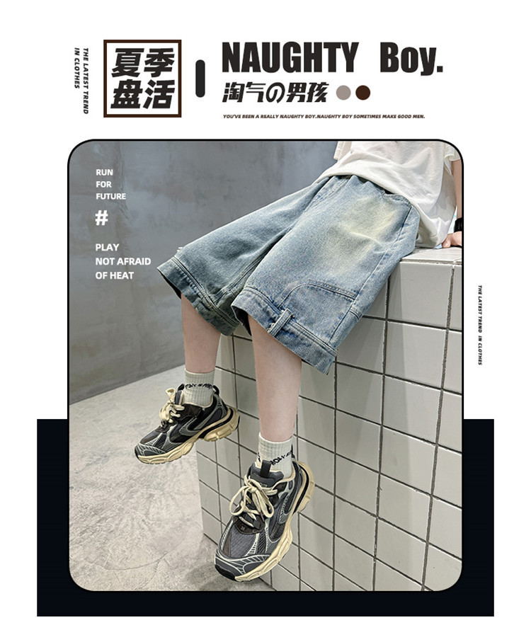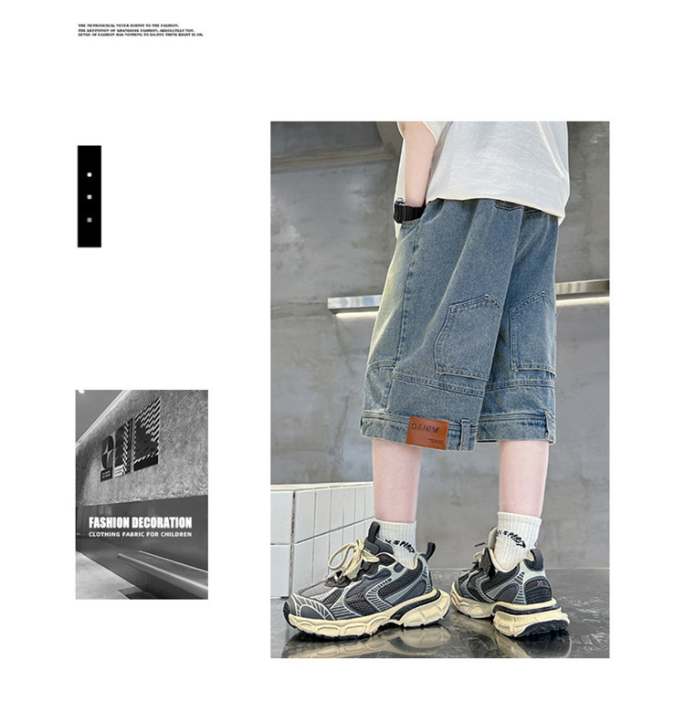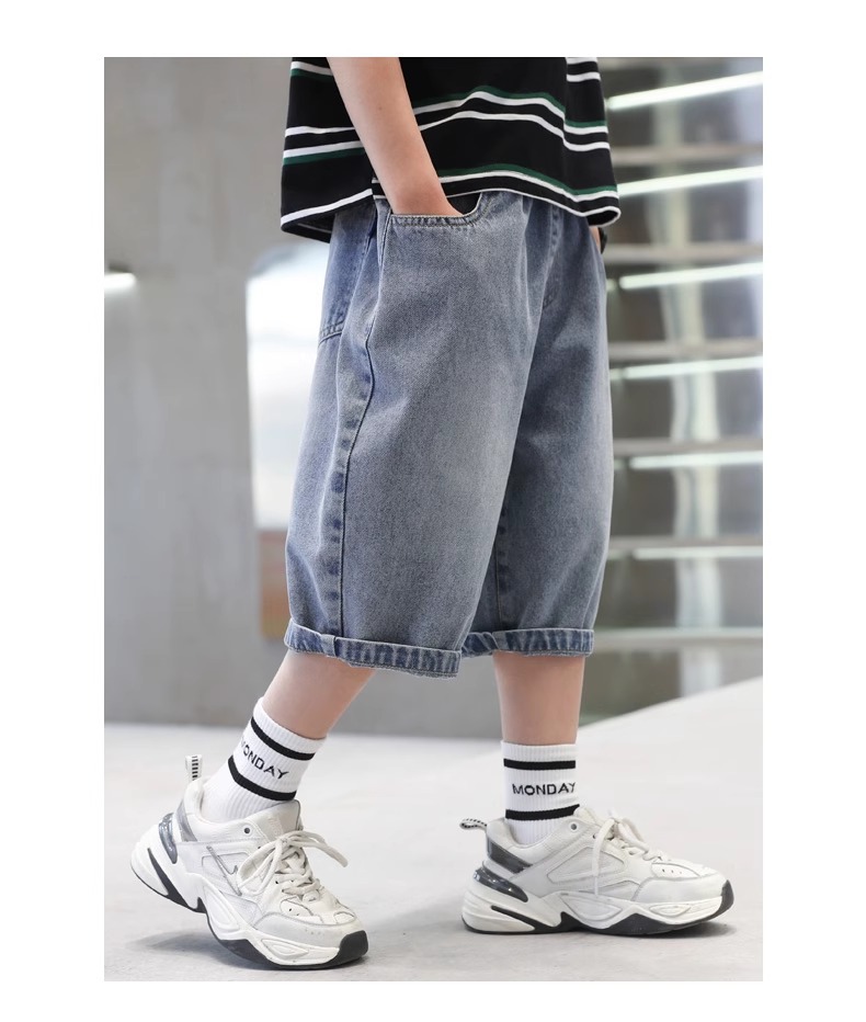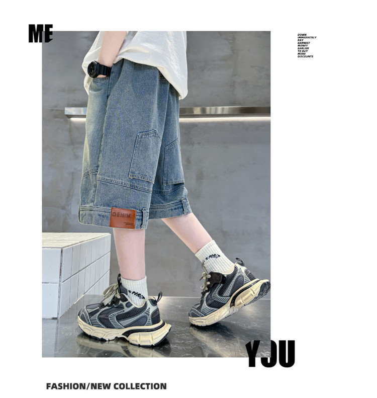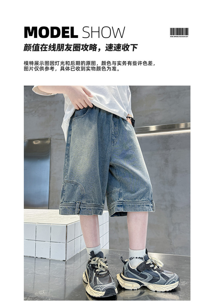 아동복 소년 여름 느슨한 스타일 데님 반바지 2025 새로운 중대형 아동용 중간 바지 캐주얼 얇은 5부 바지스토어 가기