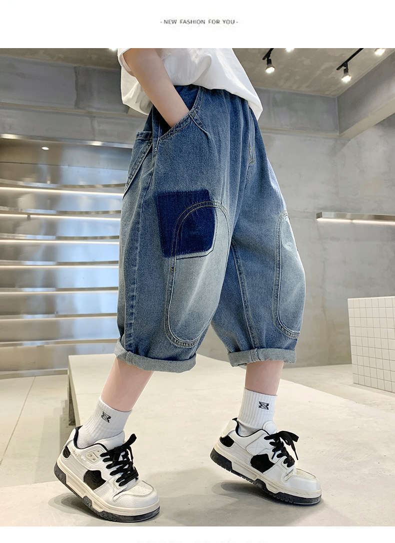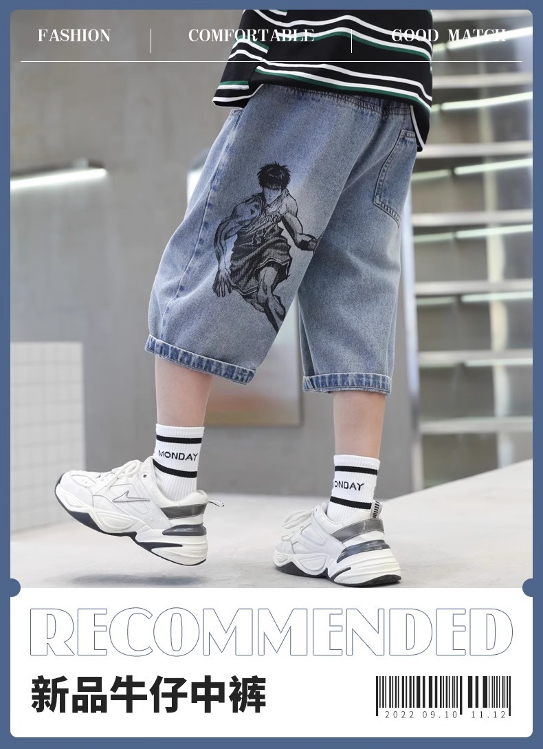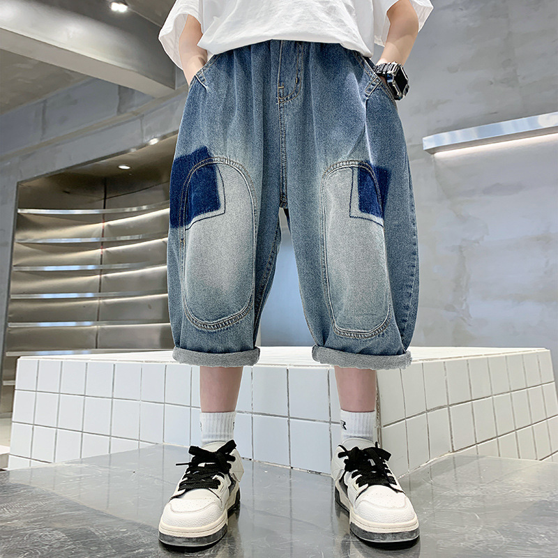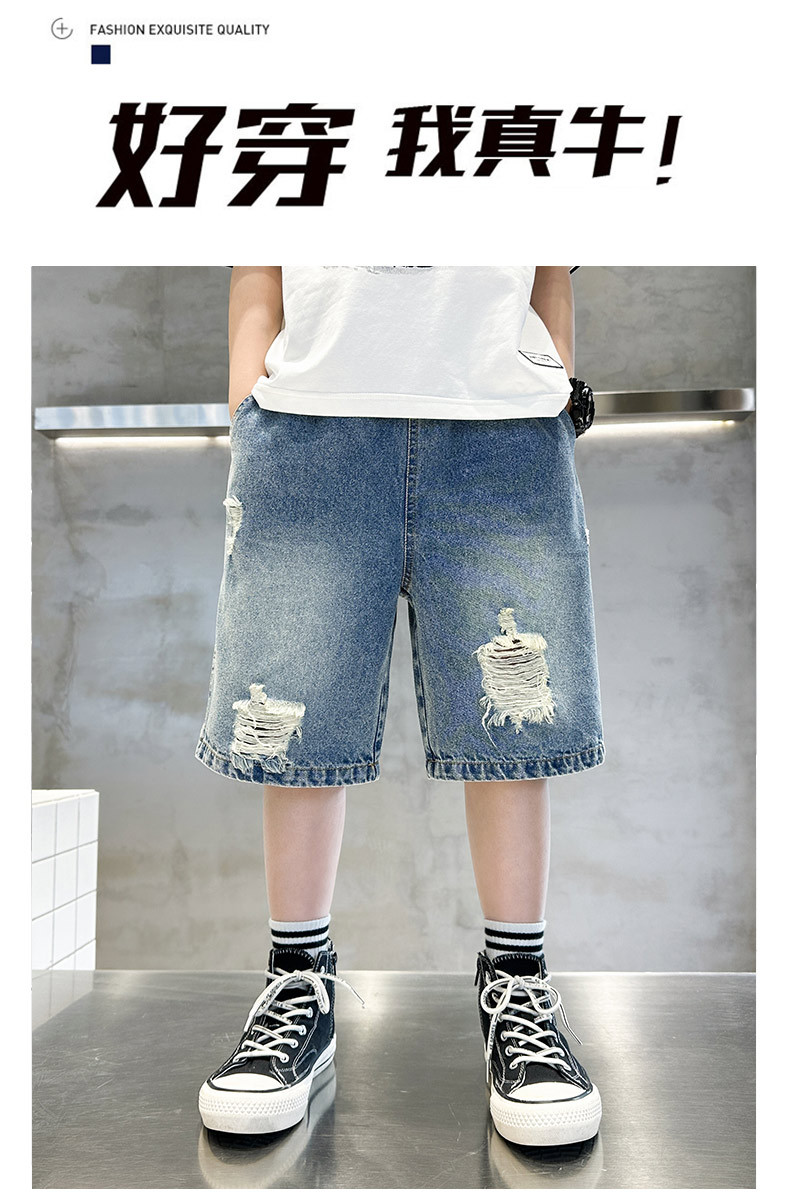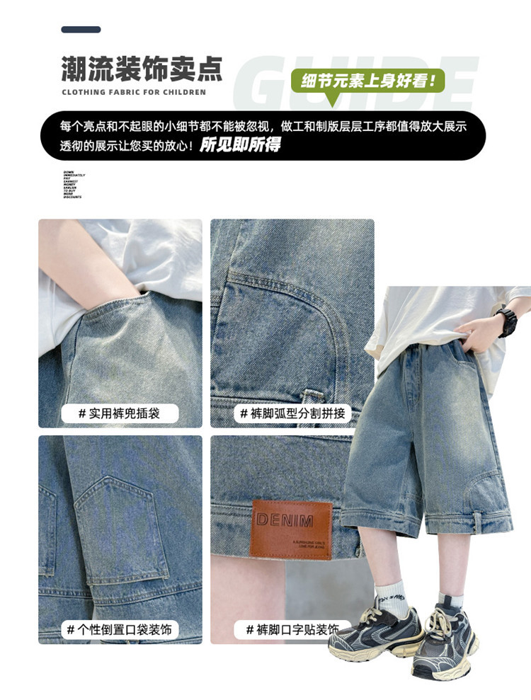 아동복 소년 여름 느슨한 스타일 데님 반바지 2025 새로운 중대형 아동용 중간 바지 캐주얼 얇은 5부 바지스토어 가기