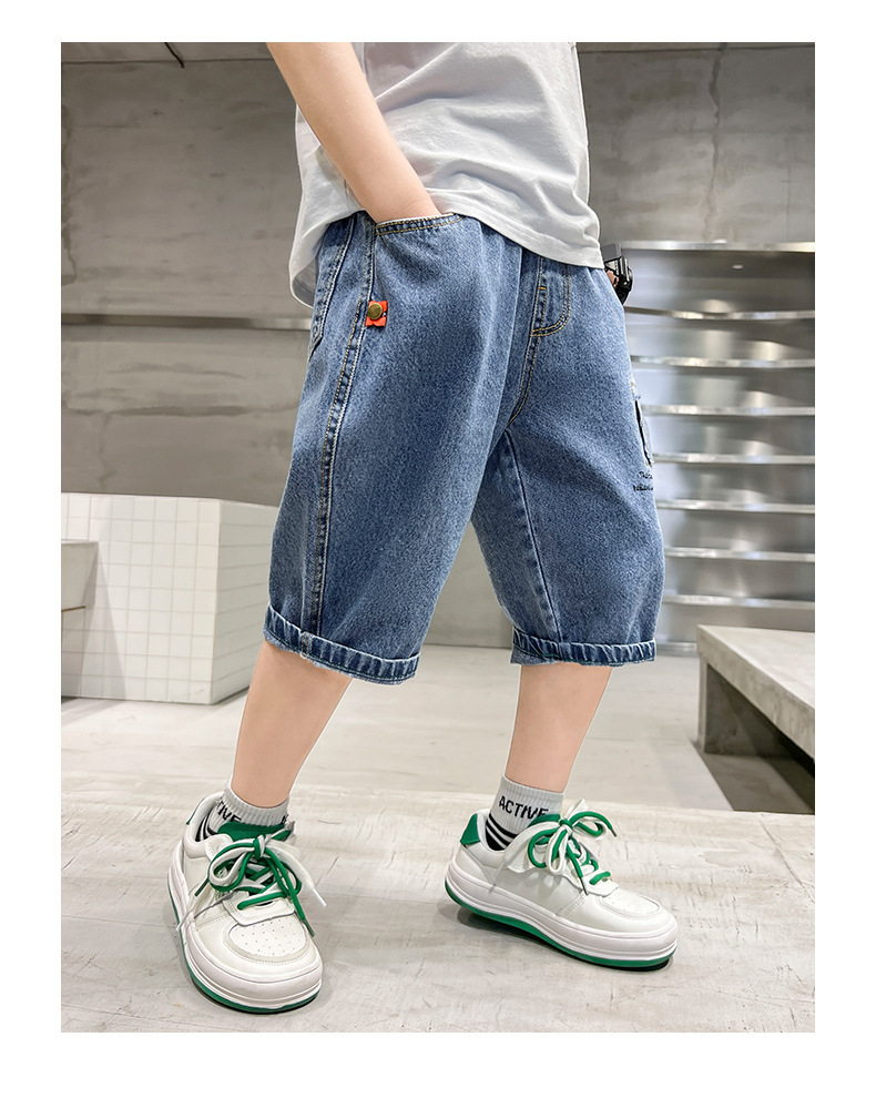 아동복 소년 여름 느슨한 스타일 데님 반바지 2025 새로운 중대형 아동용 중간 바지 캐주얼 얇은 5부 바지