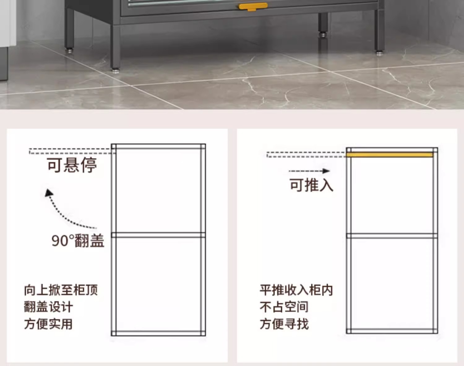 • 2도어 그레이 높이 800*폭 1000*깊이 350 플립업 도어 수납장 [Door to Door Delivery]