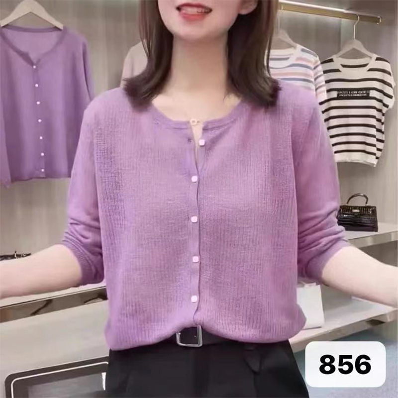 여름 니트 가디건 긴팔 여성용 단색 통기성 자외선 차단 의류, 패셔너블하고 고급스럽고 캐주얼하며 편안하고 고급 질감스토어 가기