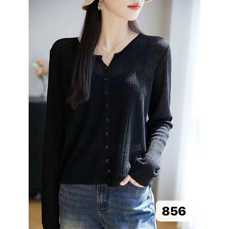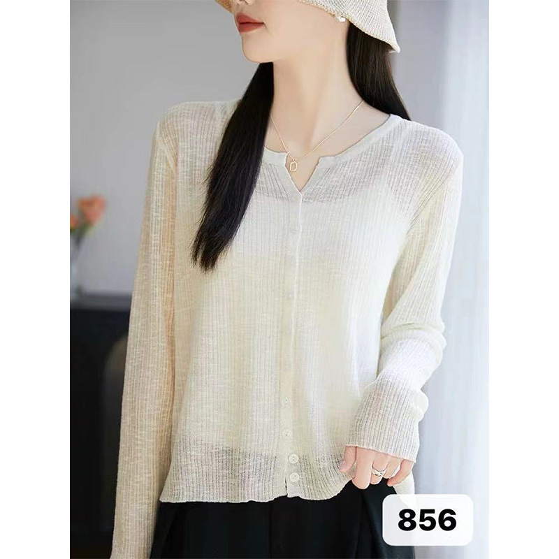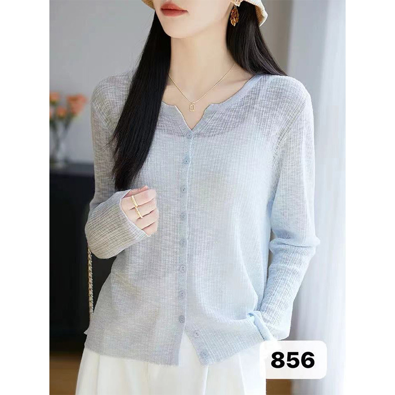 여름 니트 가디건 긴팔 여성용 단색 통기성 자외선 차단 의류, 패셔너블하고 고급스럽고 캐주얼하며 편안하고 고급 질감