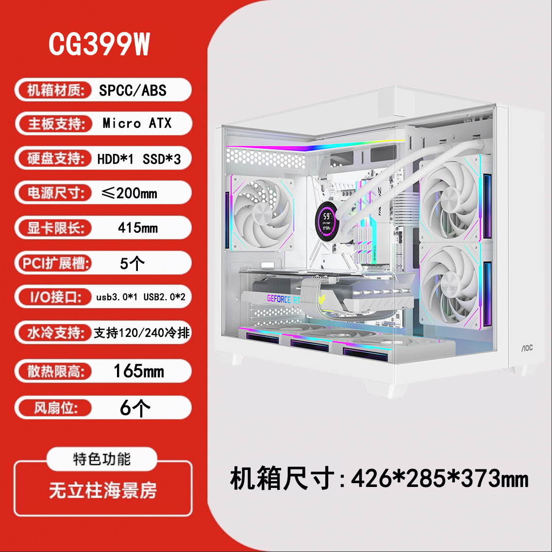 정품 AOC 컴퓨터 케이스 와이드 바디 측면 투명 강화 유리 바다 전망 데스크탑 케이스 기둥 없는 대외 무역 케이스