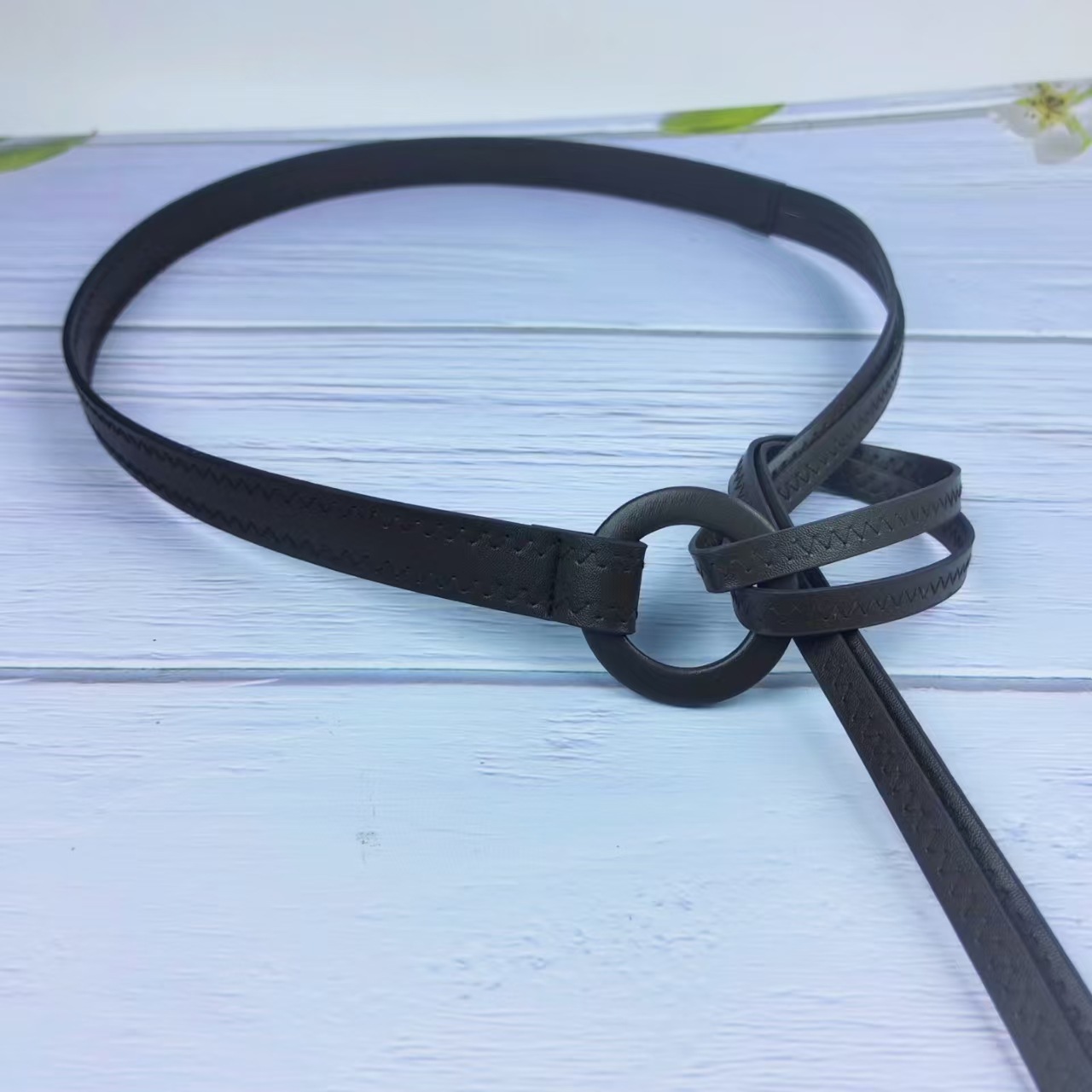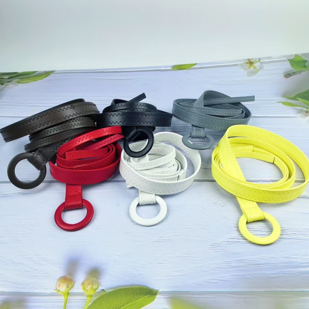 새로운 멀티 컬러 핸드메이드 원형 버클 더블 가죽 스트립 자동차 프레스 헤링본 라인 벨트 얇은 가죽 스트립 타이 웨이스트 로프 허리 조임