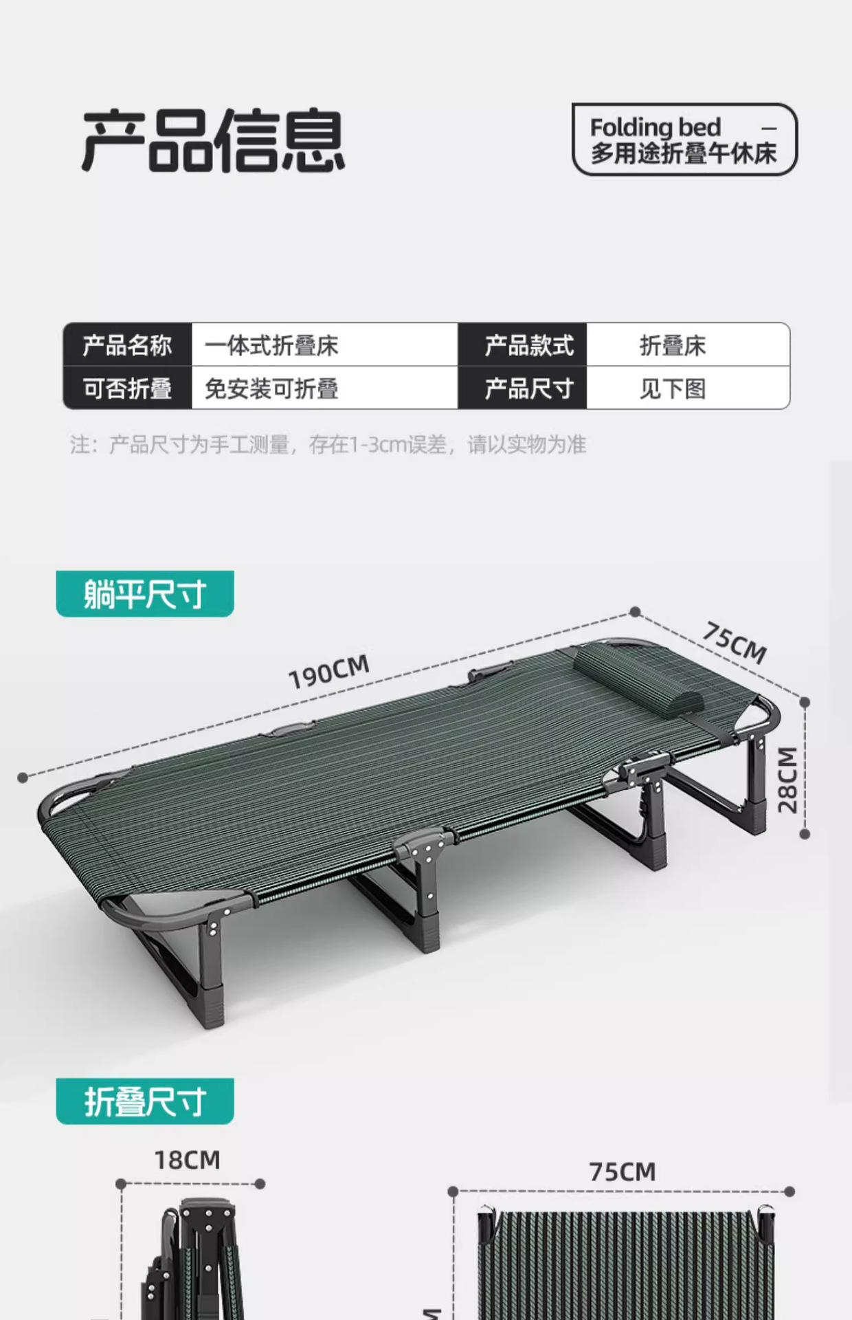 낮잠용 접이식 침대, 1인용 낮잠용품, 침대, 안락의자, 사무실, 간이병원 동행용 캠프베드, 가정용 소형 침대스토어 가기