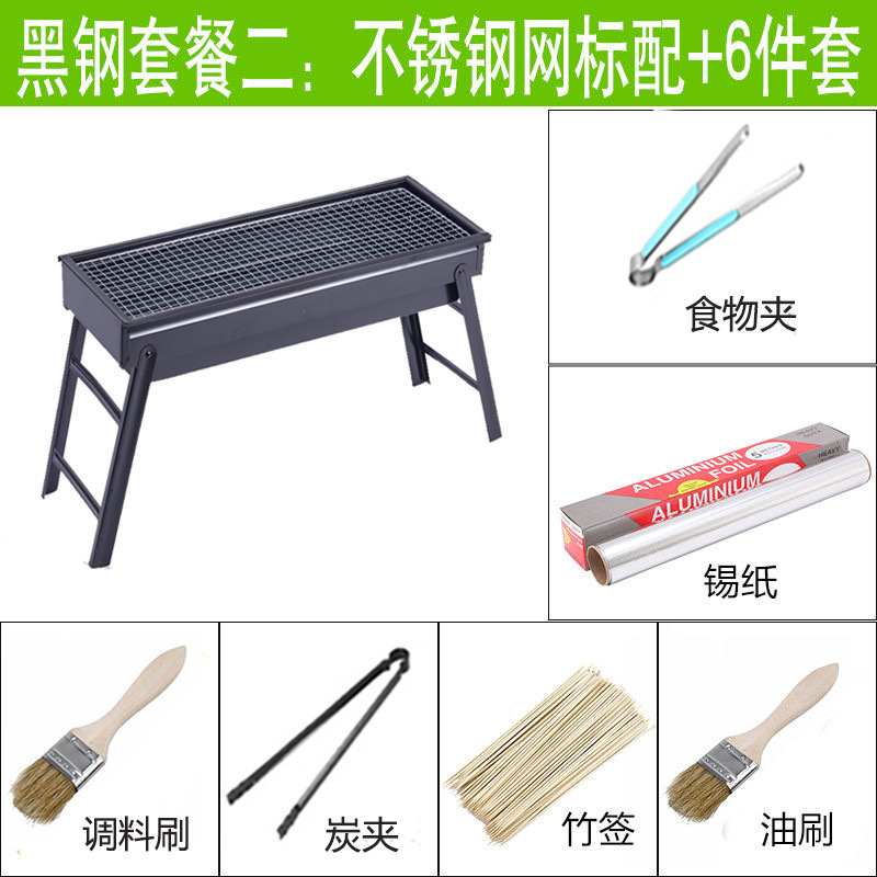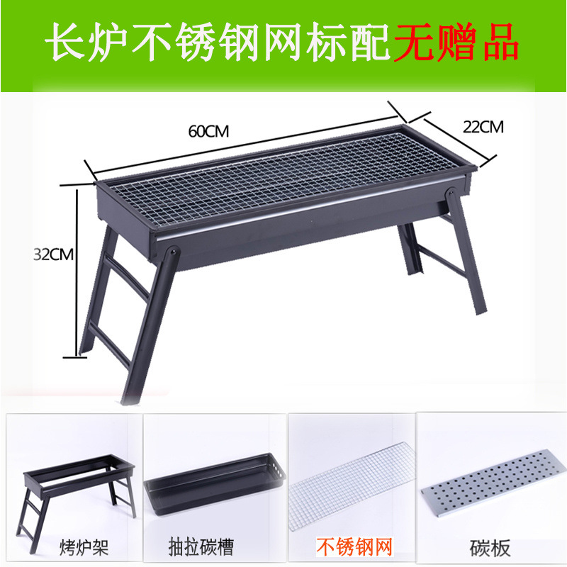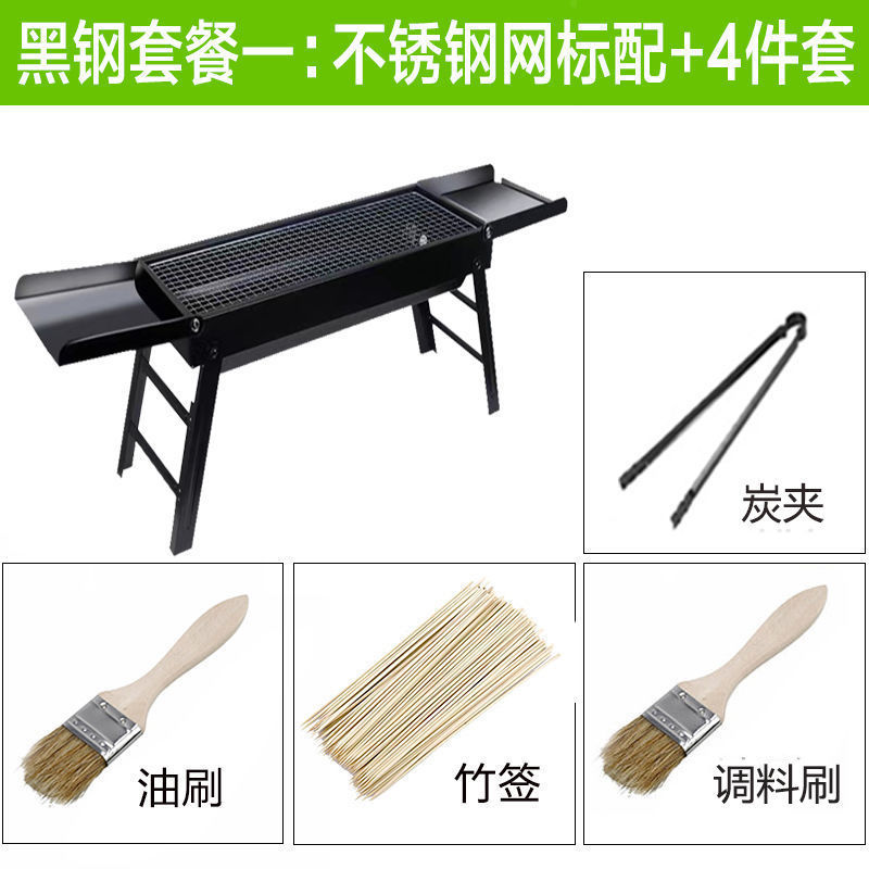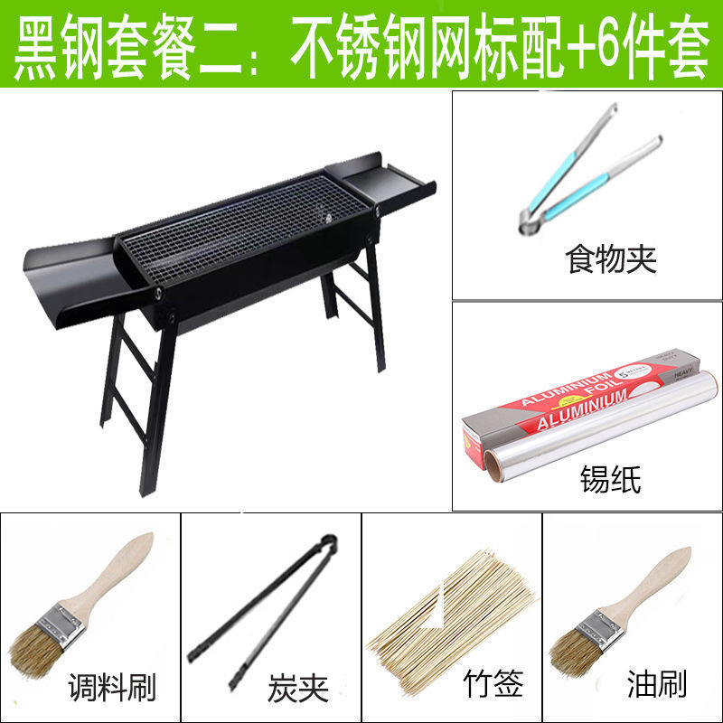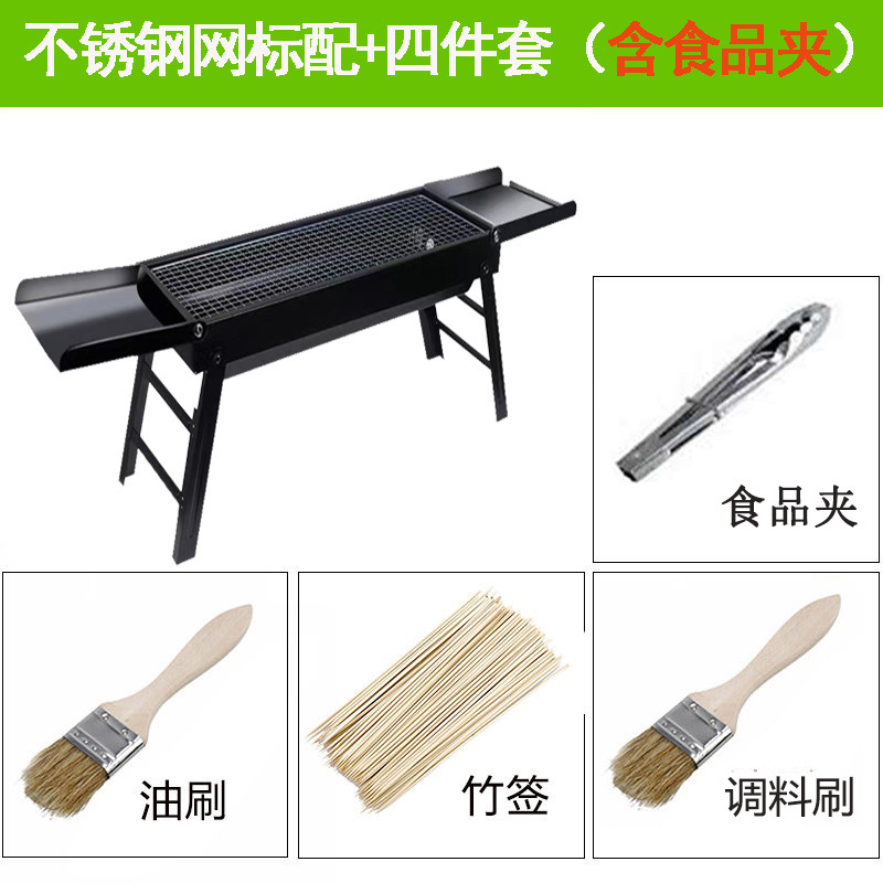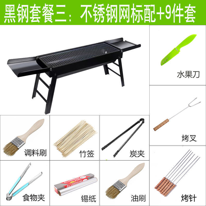 바베큐 그릴 야외 숯불 그릴 가정용 휴대용 두꺼운 바베큐 박스 세트 도구 3종 대외 무역 도매 공장스토어 가기