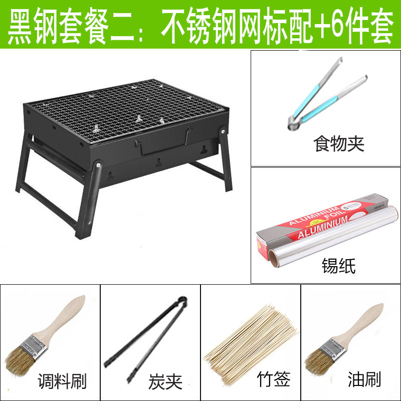 • ⊙ 소형 (35x27x20cm) 1-3인용 - 블랙 스틸 세트 2: 스테인리스 스틸 망 + 6종 세트 --- 특가 상품