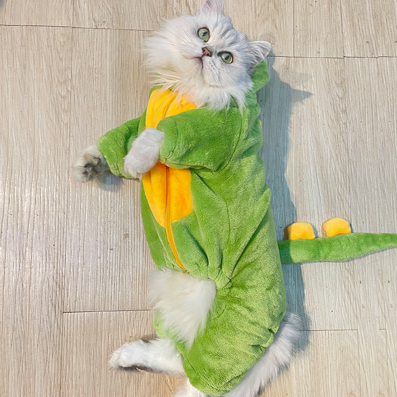 고양이 공룡 옷 애완 동물 점프 슈트 재미 있은 플러시 플란넬 겨울 따뜻한 안티 흘러내림 고양이와 개 의류스토어 가기