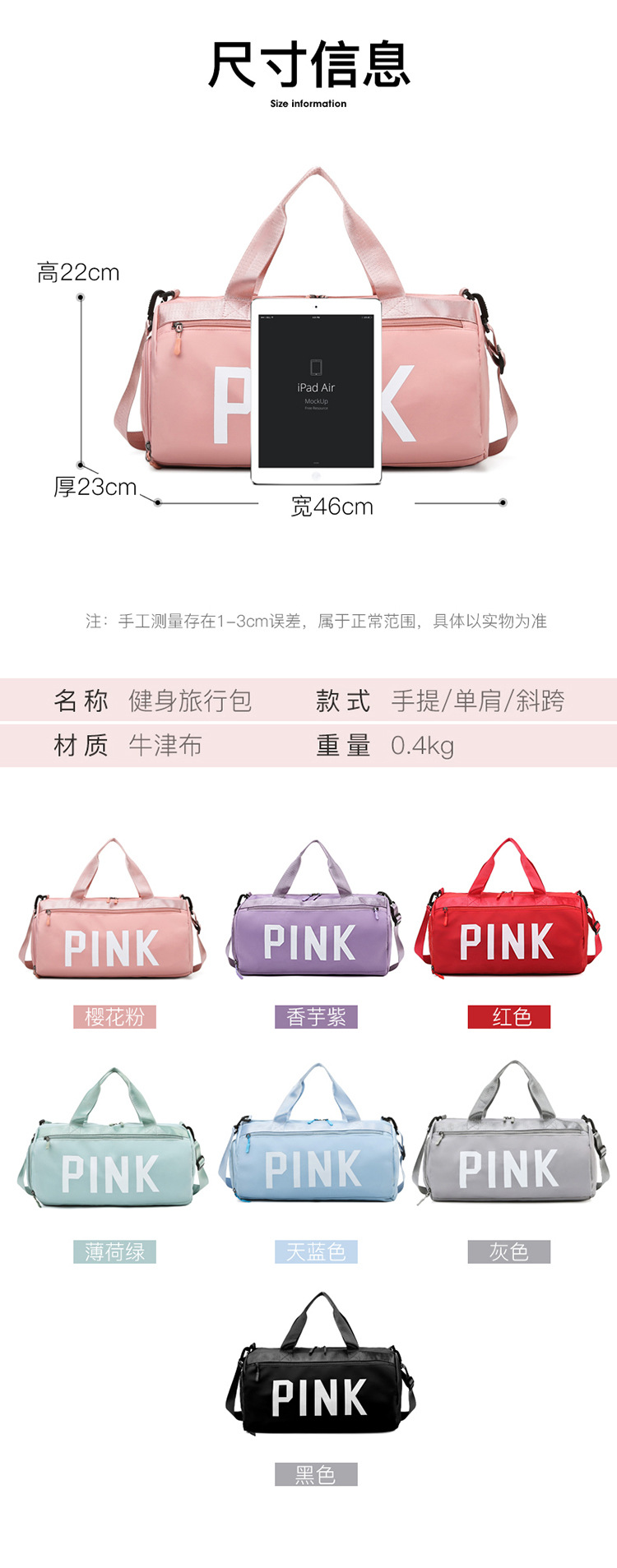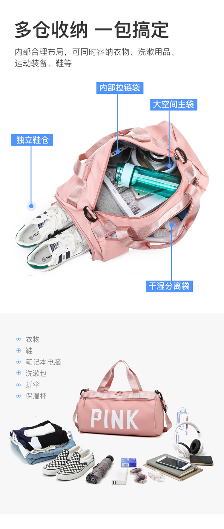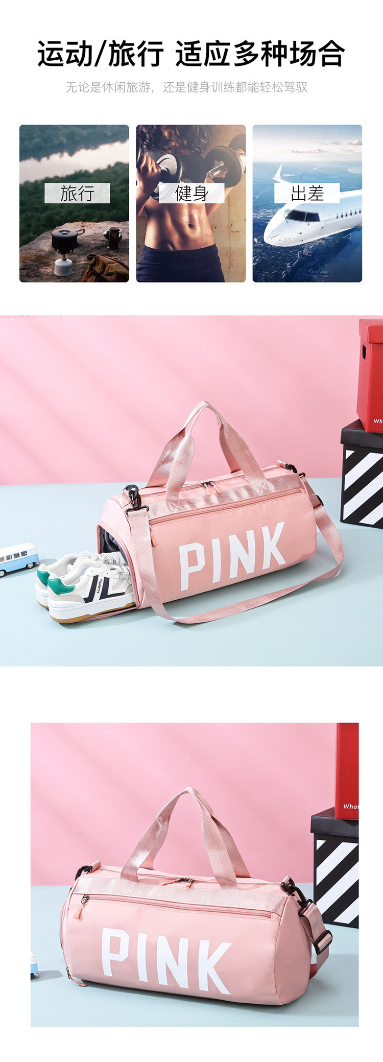 패셔너블한 피트니스백, 건식 및 습식 분리백, 여행가방, 수영스포츠 요가가방, 단거리 수하물가방, 여성용 독립신발칸스토어 가기